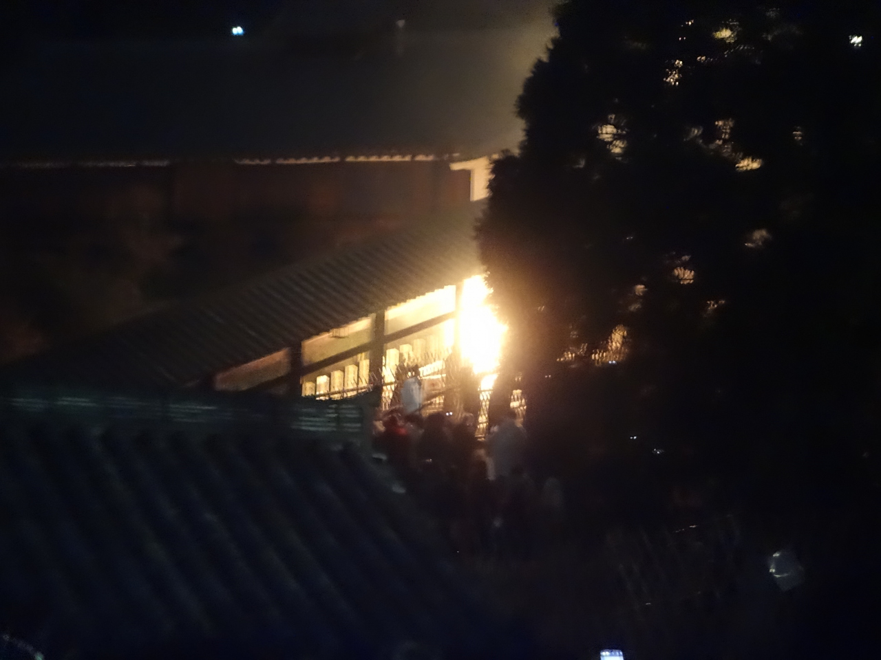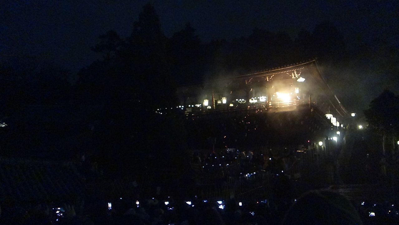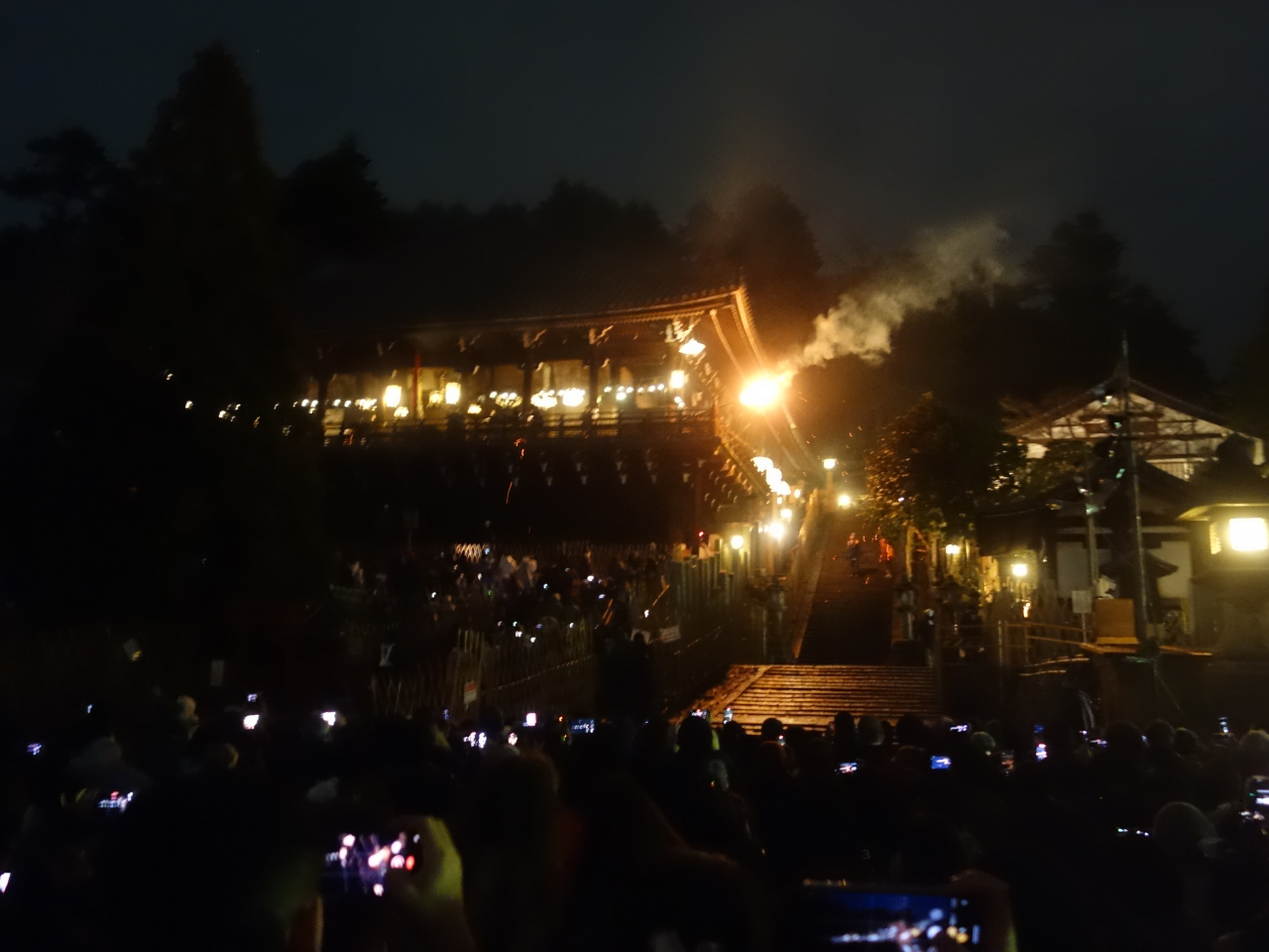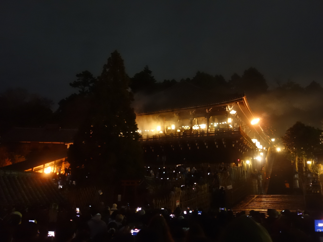 「お松明」がよくニュースで見る二月堂の欄干を松明をもって走る行事です。10本か11本(12日)の松明が燃やされます。