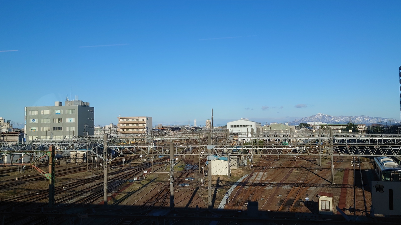 かつては北陸の中枢駅だった直江津駅は巨大な駅です。駅構内の通路から線路を見下ろすとその数にも圧倒されます。北陸新幹線、上越新幹線ともに新幹線がここを通る事はなく、なんとなく寂しい事になっています。しかし、直江津駅から信越本線で柏崎辺りまでは海岸線ギリギリを走るとても眺望の素晴らしい沿線です。上越新幹線にはえちごトキメキ鉄道のはねうまラインが接続しています