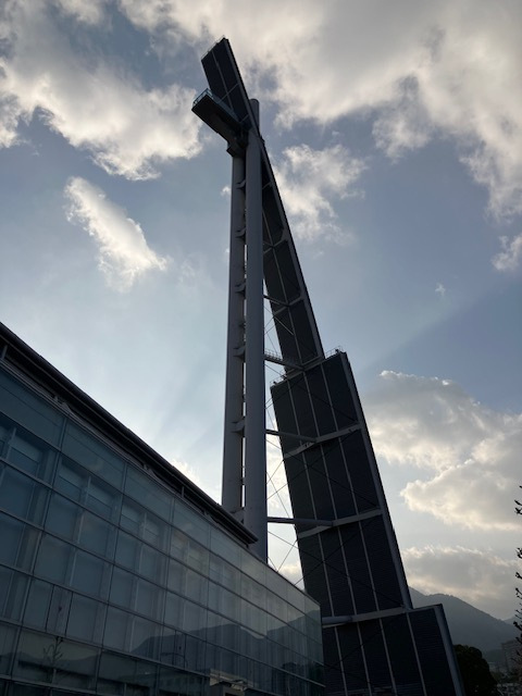 由布院からバスで別府へ移動したのですが、最初に目についたのがこのグローバルタワーでした。最初は何なのかわからず、ネットで調べて初めてわかりました。上の方が展望台になっていて登れるとのことで行ってみましたが、年末で休止していて登れませんでした。しかし、異様な形のタワーで驚きました。
