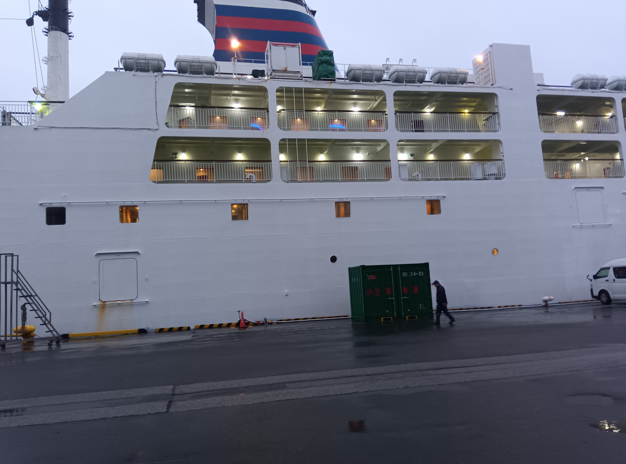 客室は雑魚寝の部屋からバスルーム付の部屋まであるので、予算に合わせて選べます。新しい船なので、どこも大変綺麗です。食堂やコンビニも付いていて、食事やお菓子、お酒に困ることはありません。パブリックスペースは22時には消灯されます。