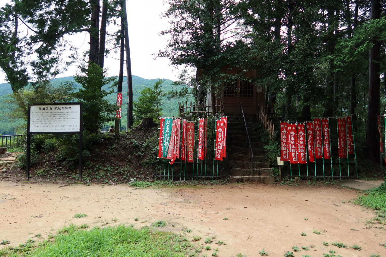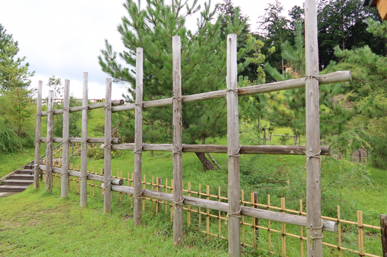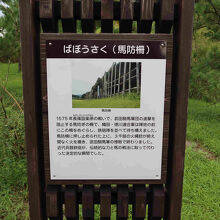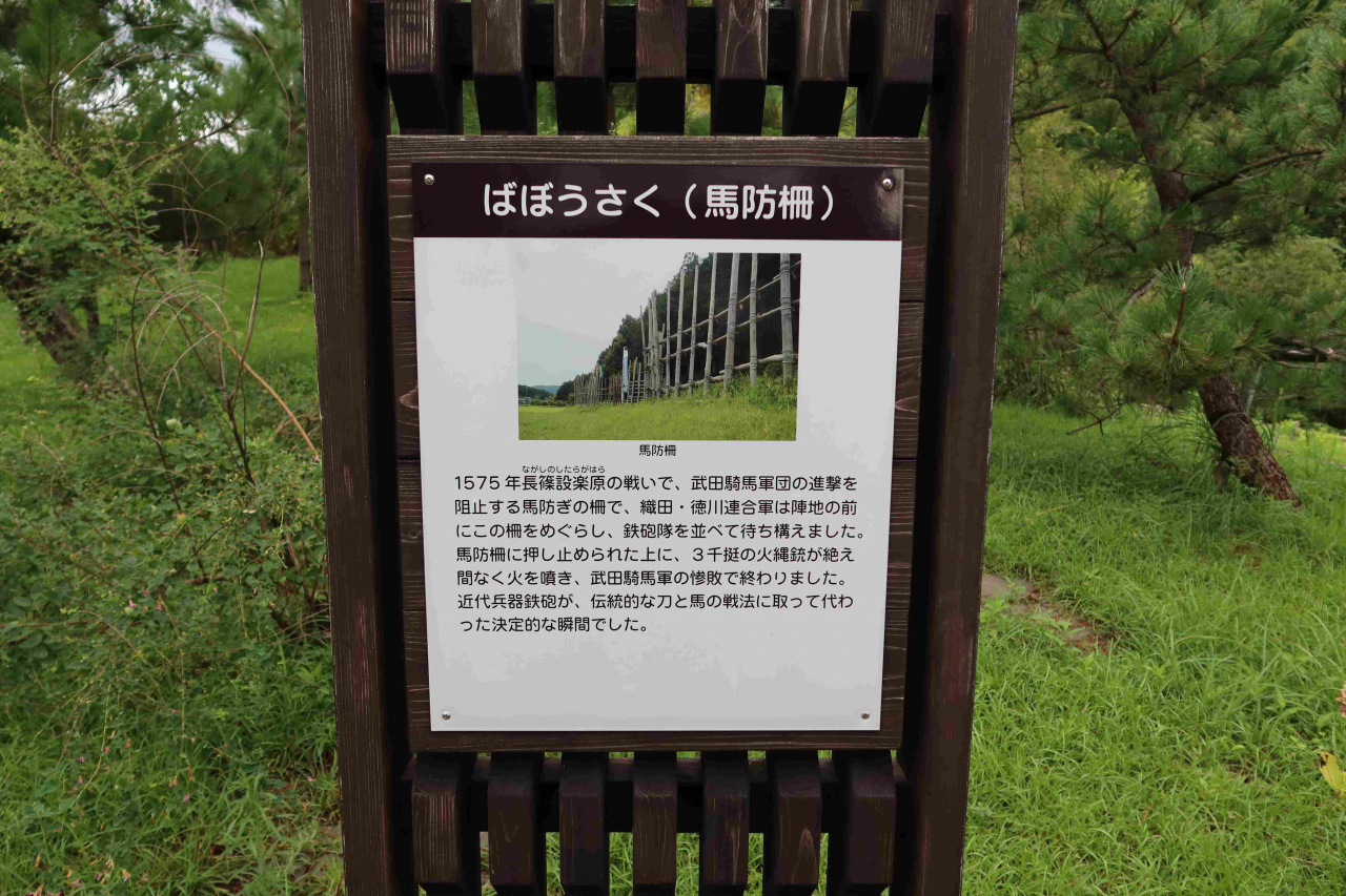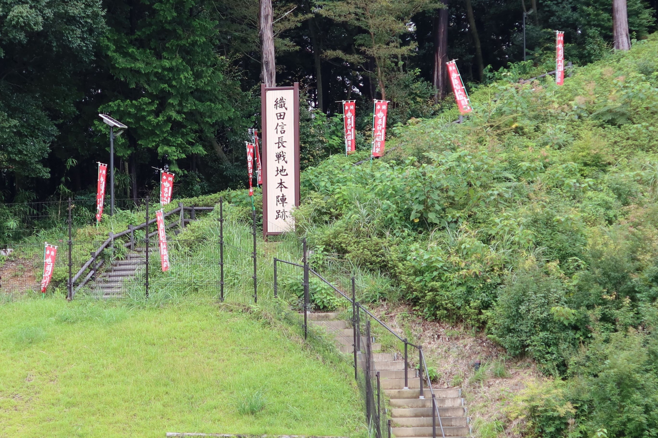 下りパーキングエリアからは隣接する信長本陣跡に徒歩で移動でき、すこし坂を登ると着きます。馬防柵(ばぼうさく)もありました。