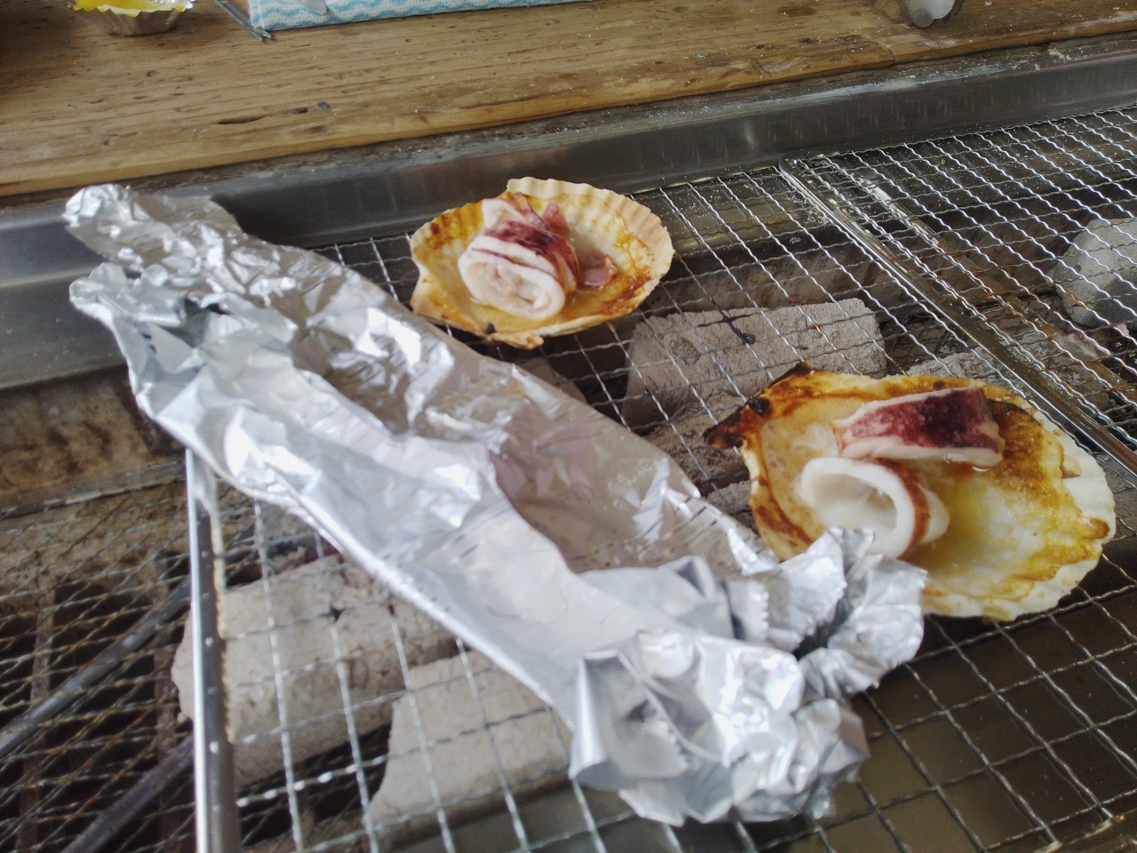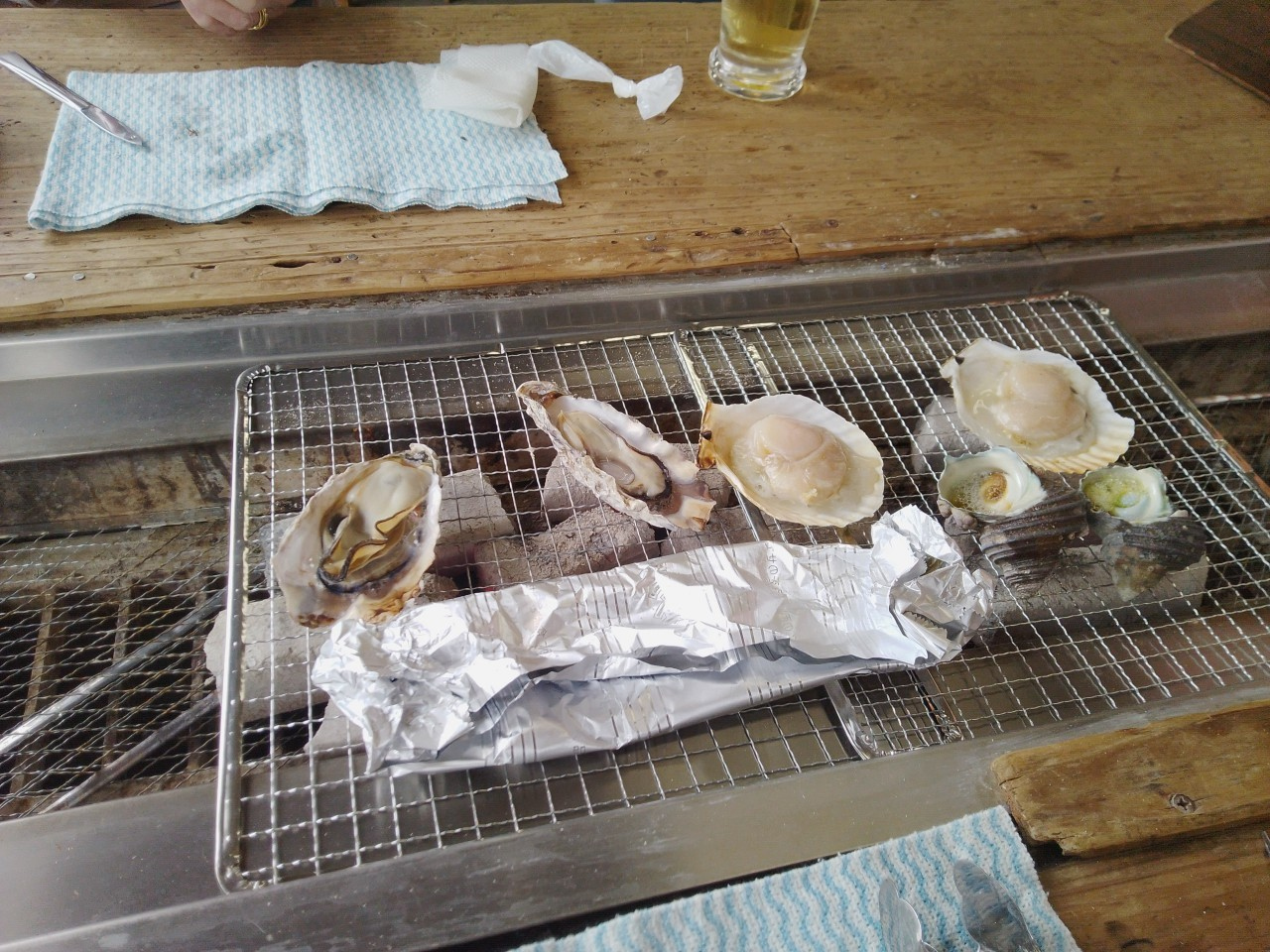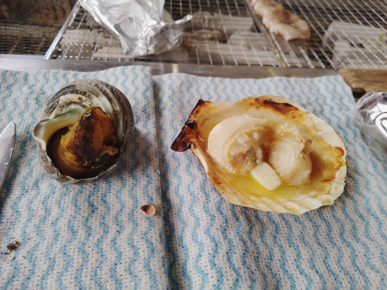 - 採れたての魚貝を炭火で焼きとても美味しい