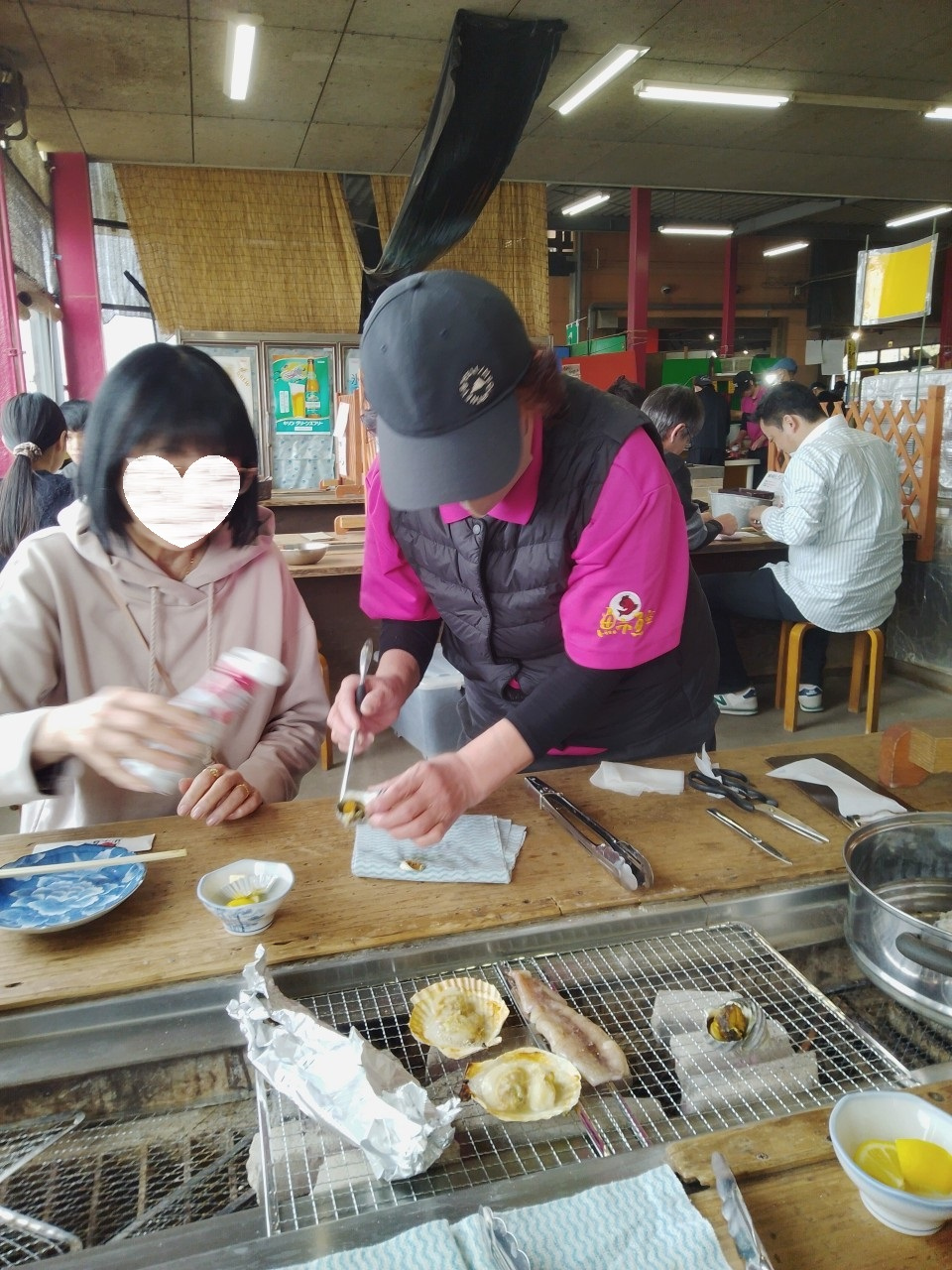 守江湾の景色を観ながら炭火焼で焼いた魚貝類を美味しく頂きました!!