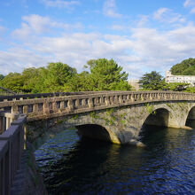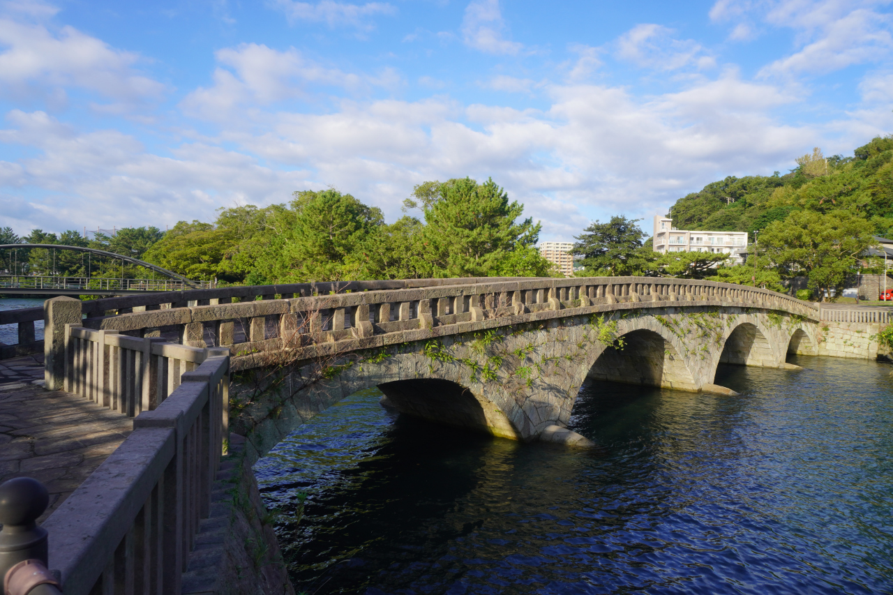 玉江橋は、甲突川五石橋のひとつ。甲突川に架かっていた五つの石橋で、上流から玉江橋、新上橋、西田橋、高麗橋、武之橋の順。現在は西田橋、高麗橋とともに石橋記念公園に移設保存されています。西田橋、高麗橋と比べると小ぶりですが、精緻な印象は同じです。