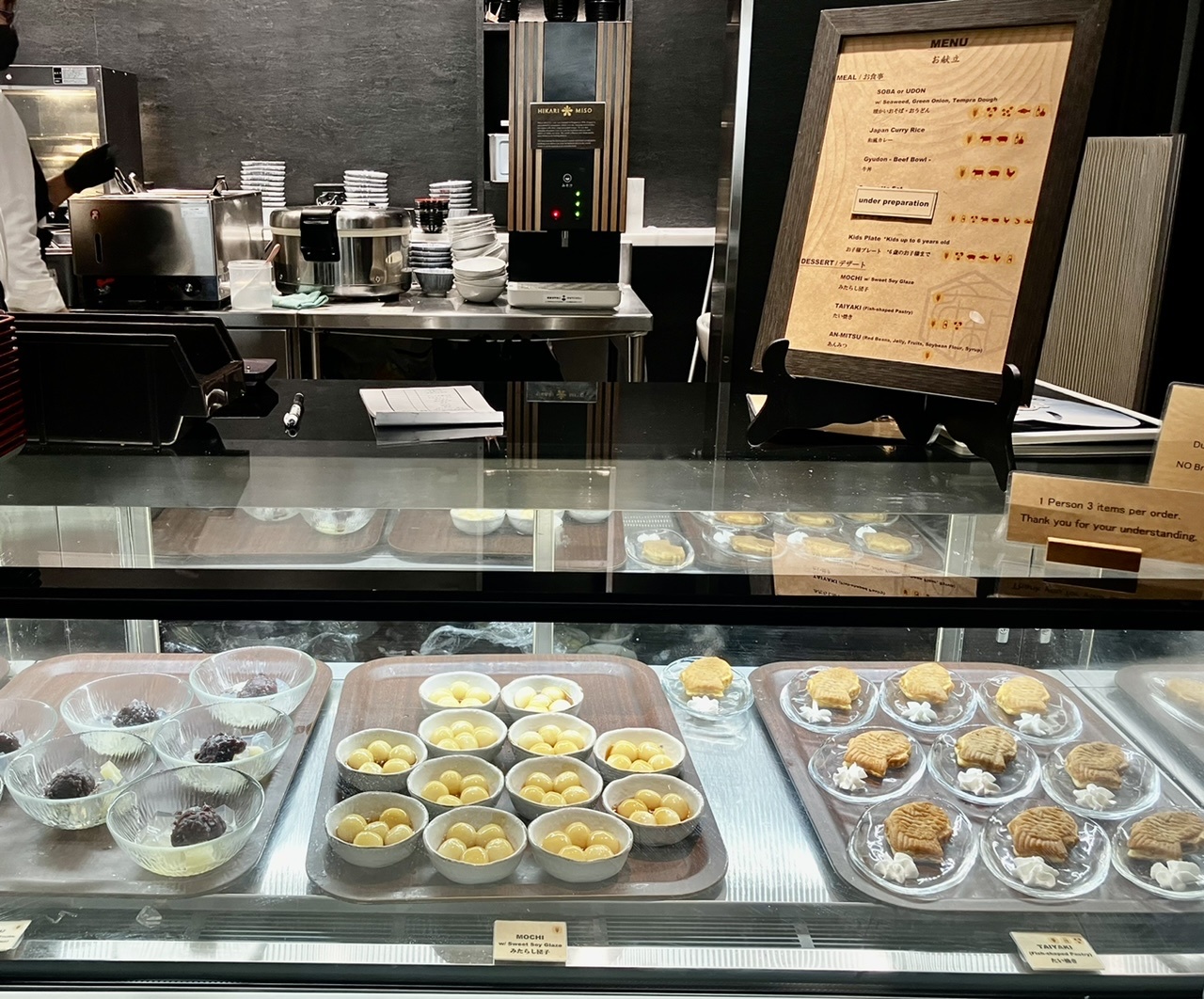 みたらし団子やたい焼きなどのスイーツのほか、うどん、カレー、牛丼などはカウンターで注文するスタイルです。