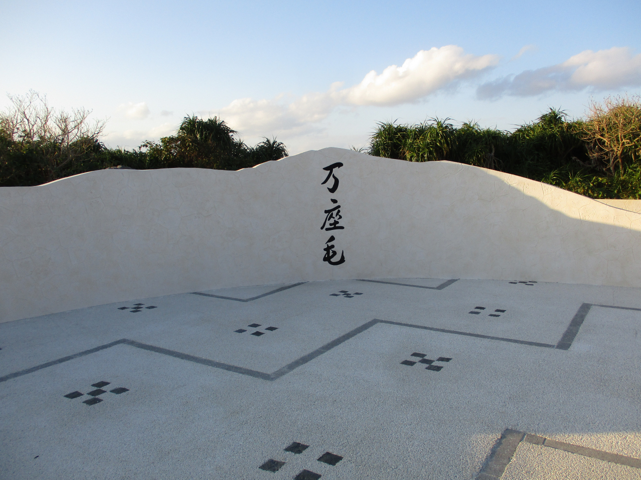 残波岬から国道58号線を北上し、恩納村役場を過ぎたところにある恩納北T字路を左折してすぐのところにありました。駐車場のまわりには、土産屋のバラックが立ち並んでいましたが、ここでなければ買えないというものは特になかったです。万座毛は海に向かって象が身を乗り出してるような形の大岩でした。