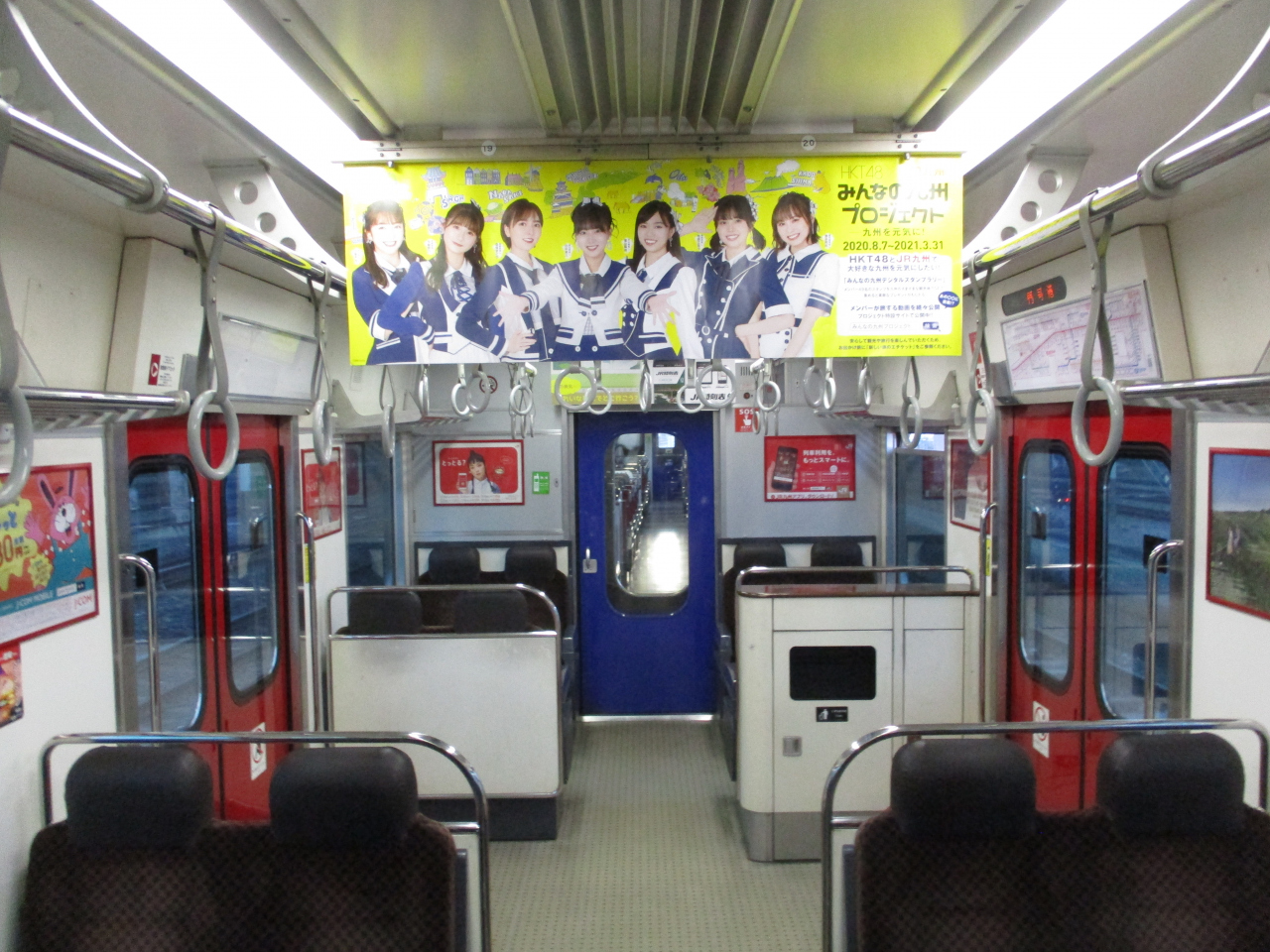 JR鹿児島本線の車内にアイドルグループHKT48が観光を推奨しているポスターを見かけました。都心を走行している電車の車内では見かけない広告でした。やはり、九州のタレントさんと言えばHKT48なのでしょうか。駅構内やホームで流れる観光PRの放送も流れていました。