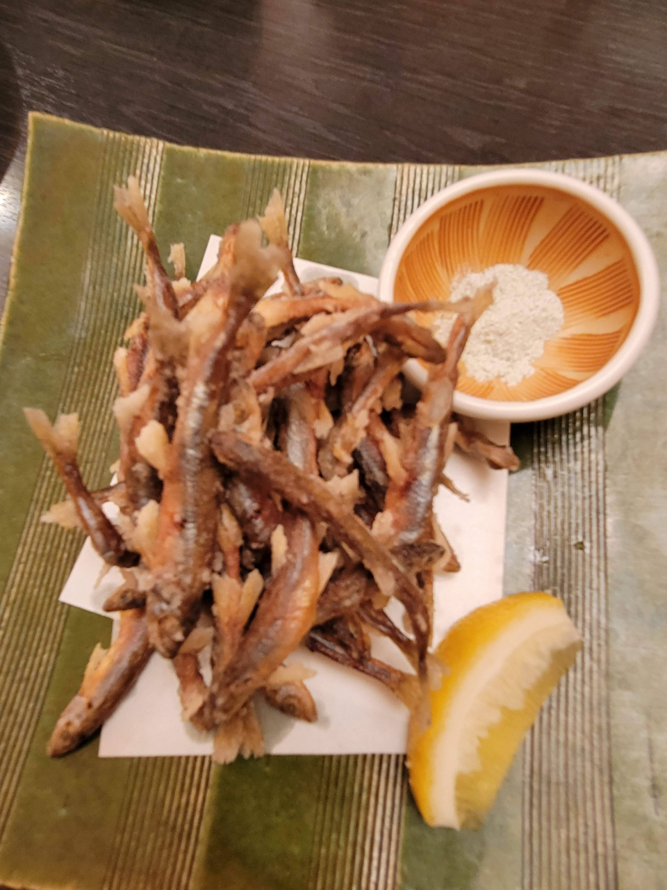 小ぶりのわかさぎがこんがりと揚げられていて、歯応えのあるおつまみでした。