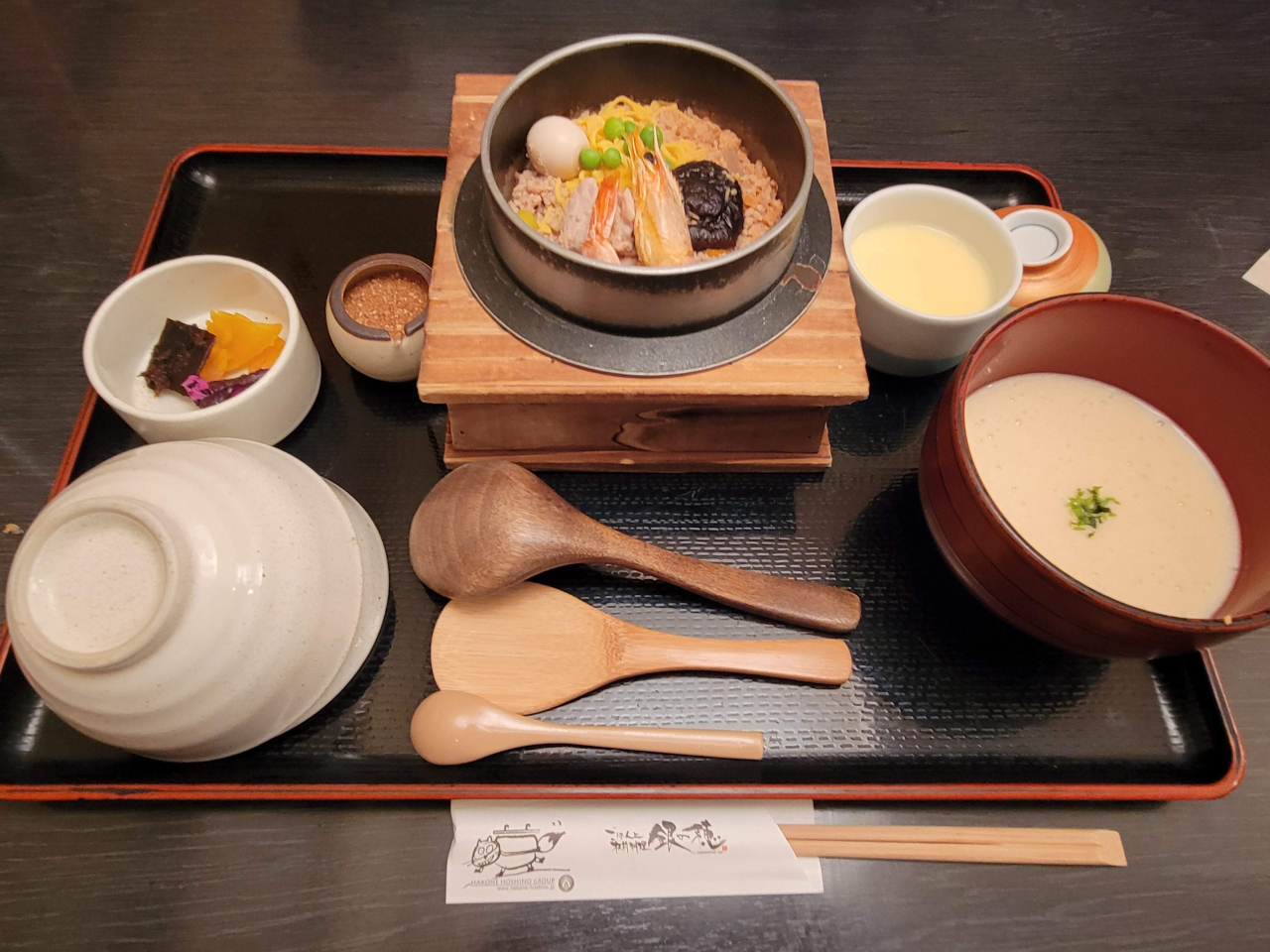 お吸い物をとろろ汁に変更してもらいましたが、釜めしにとろろ汁をかけて食べるのが最高でした。
