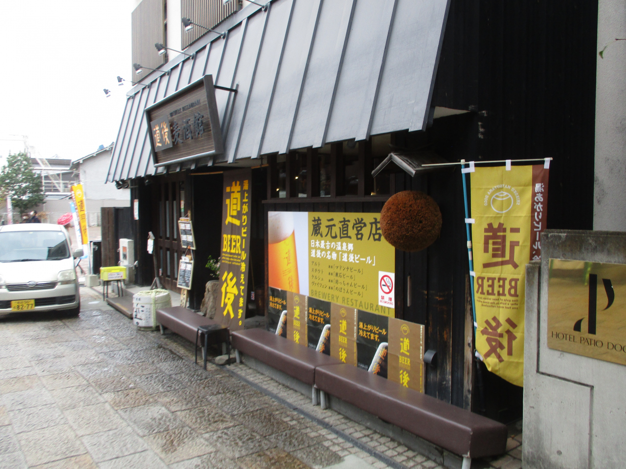 道後麦酒館は道後温泉本館の隣にあります。お風呂上がりに一杯というコンセプトでした。非常に道後の町並みと雰囲気に溶け込んでいましたが、入ってメニューを見ると普通でした。地ビールしかなかったですが、普通の生ビールが置いてあったら良かったと思いました。