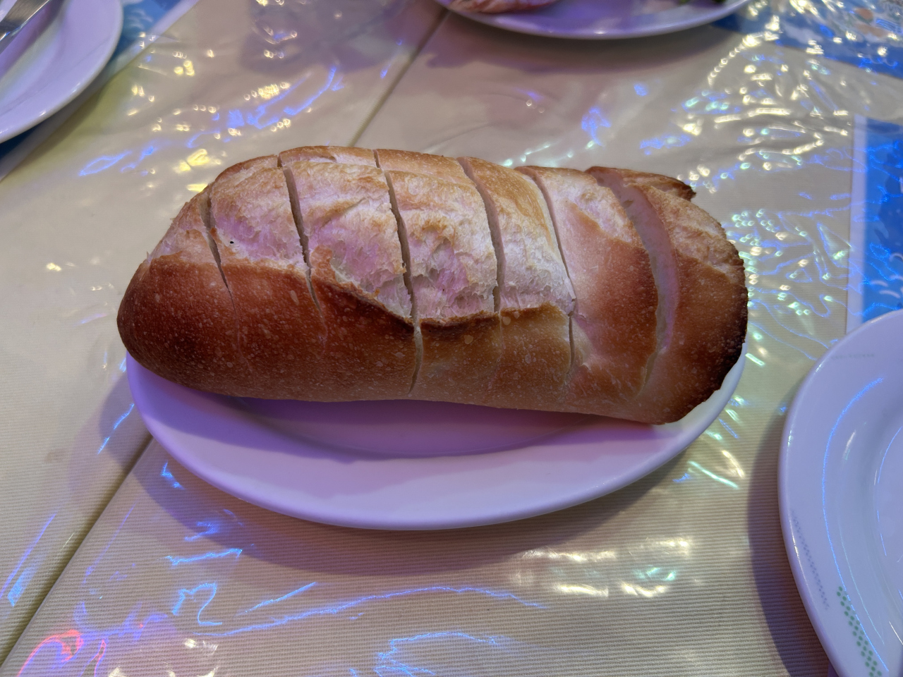 最初にきたパン(550円)が思いがけず美味しい・・エビ唐揚げS(1500円)は大好きな海老が大きくて美味。たこトマト煮(2000円)は独特なスパイスが利いていてパンと一緒に、珍しいムサカS(1100円)も独特で美味。こんなに美味しいならコースにしてもっとほかのお料理も食べてみたかったね~