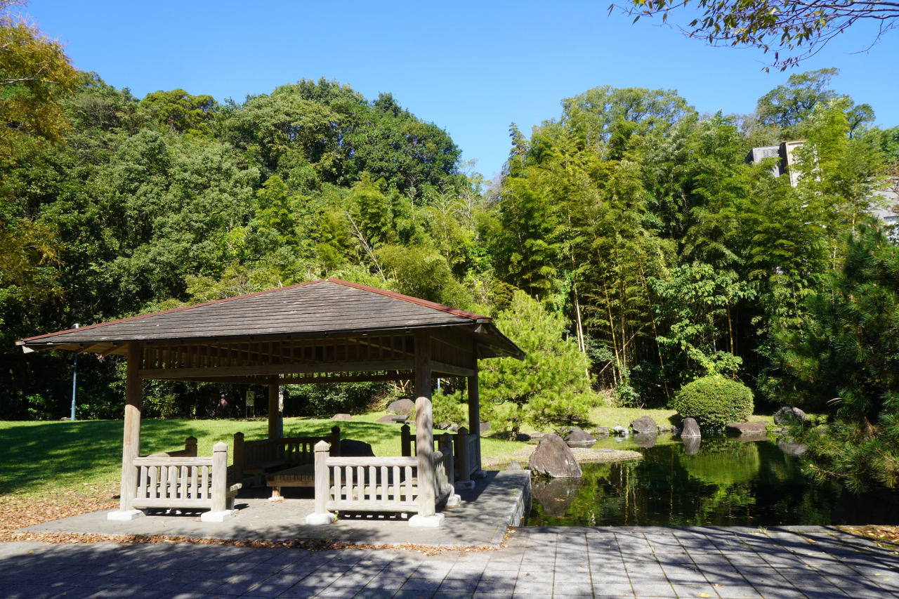 鹿屋城址は、広い駐車場とその先の山城のふもとにあたる場所に日本庭園のように美しく整備された一角がありましたが、全体の様子はよく分かりませんでした。