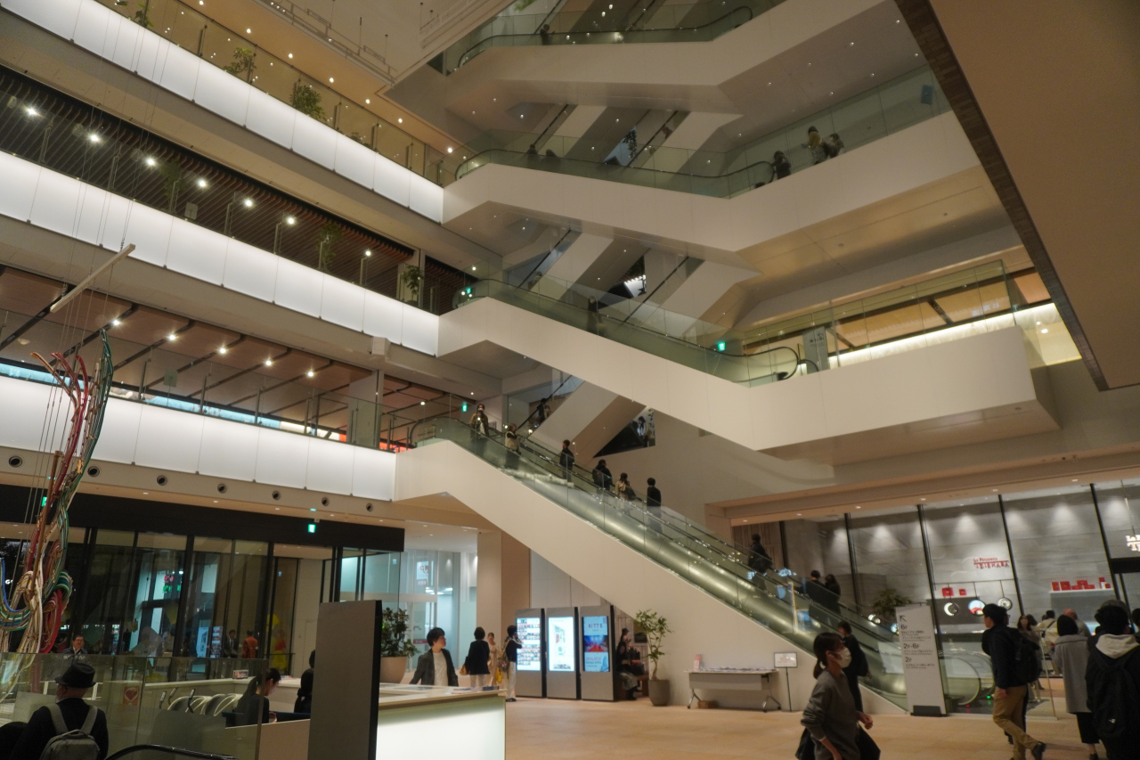 KITTE大阪は、2024年7月にオープンしたほやほやのビル。東京、博多、名古屋に次いで4番目のKITTEです。中央吹き抜けの構造は、東京のビルでも同じ構造ですが、大きさが少し小さい分パンチはそれほどでもないかなあ。共通スペースが大きい分、レストランで食事しましたが、店内のスペースが限られているようにも感じて、その辺りがちょっと微妙です。