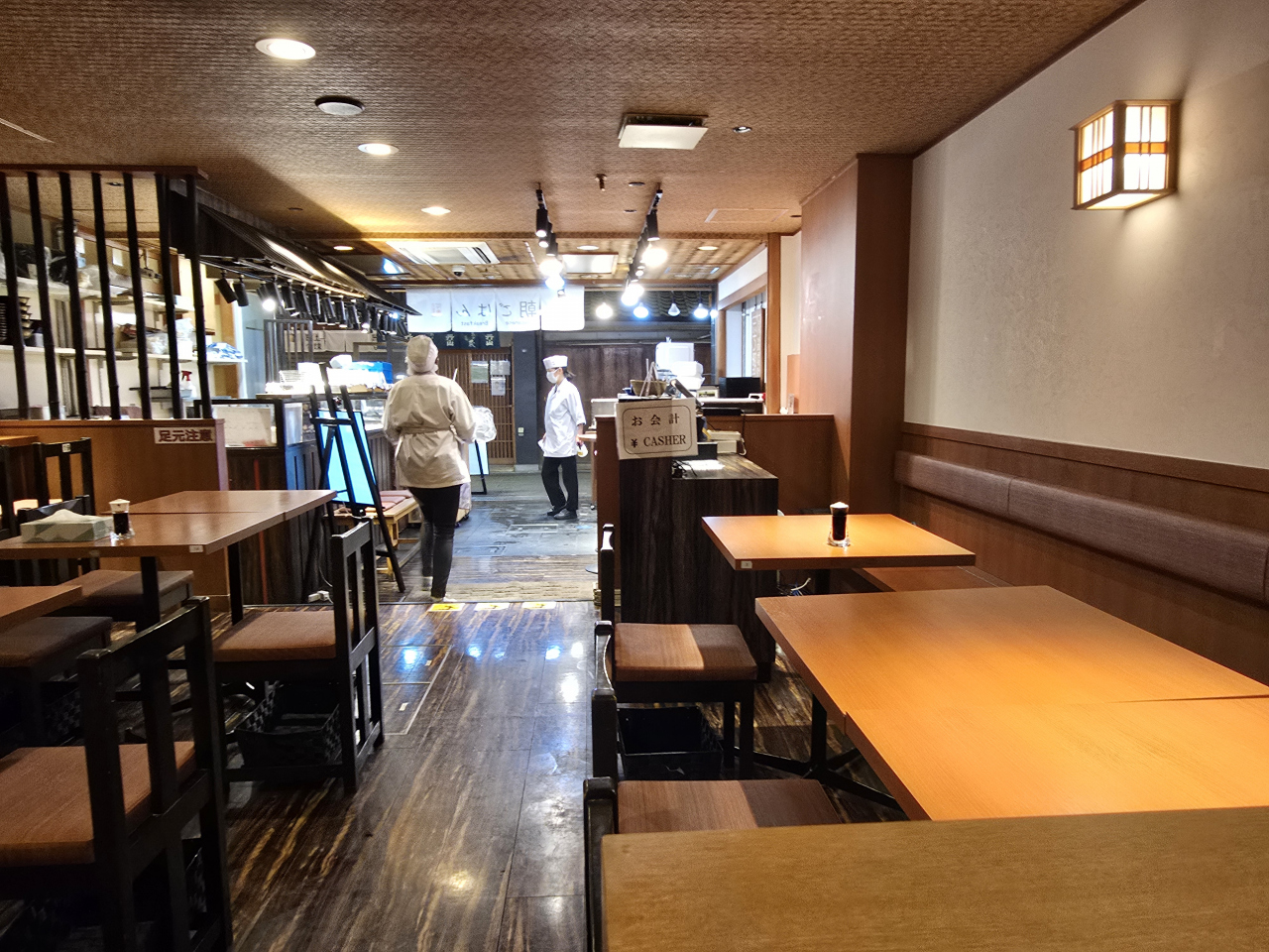 錦市場で、立ち食いでなく、きちんと椅子テーブルで定食の朝食が食べられる食堂。