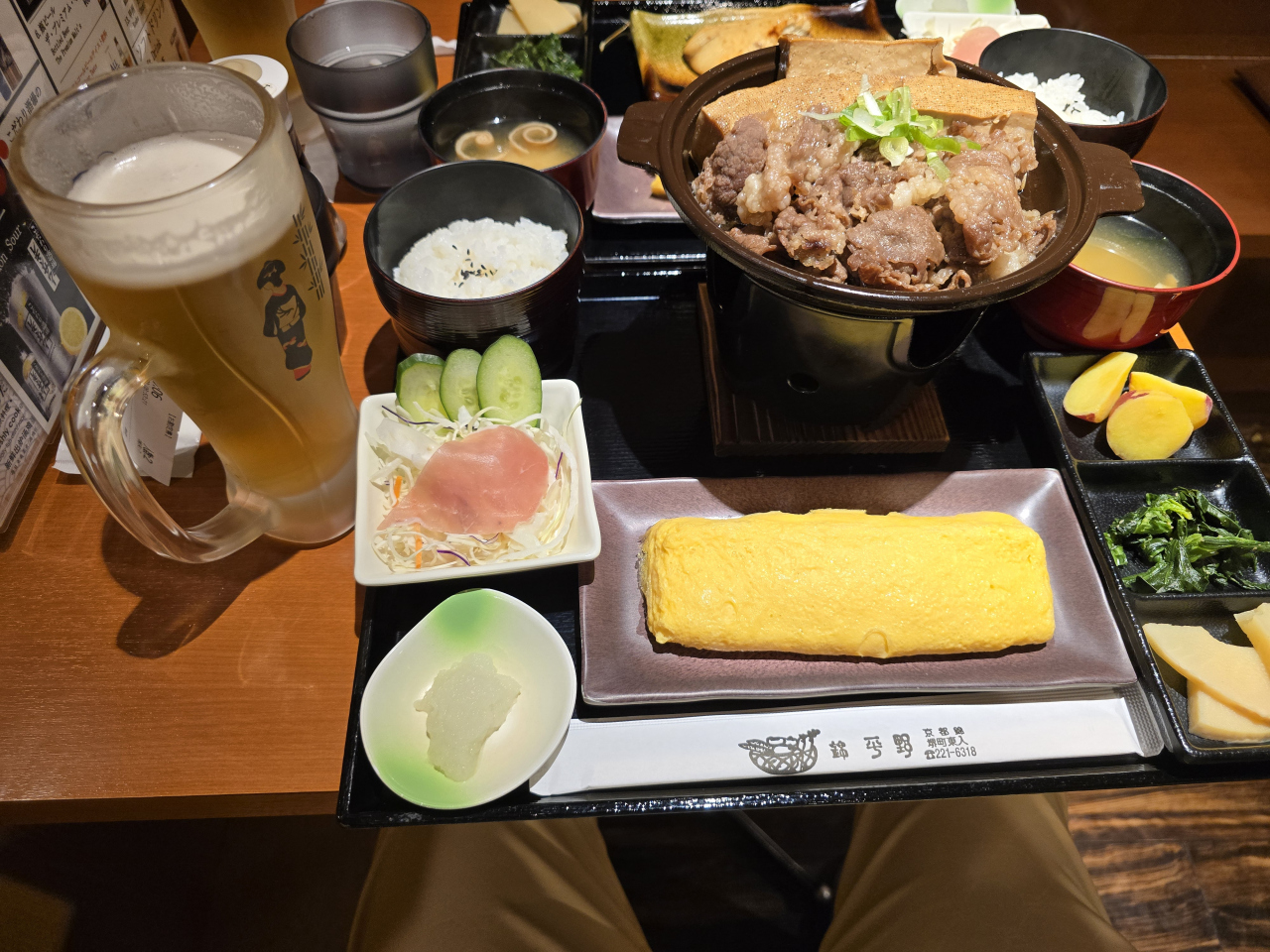 焼き魚定食や、すき焼き風牛肉定食が食べられる。どれも名物のだし巻き玉子がついてくる。