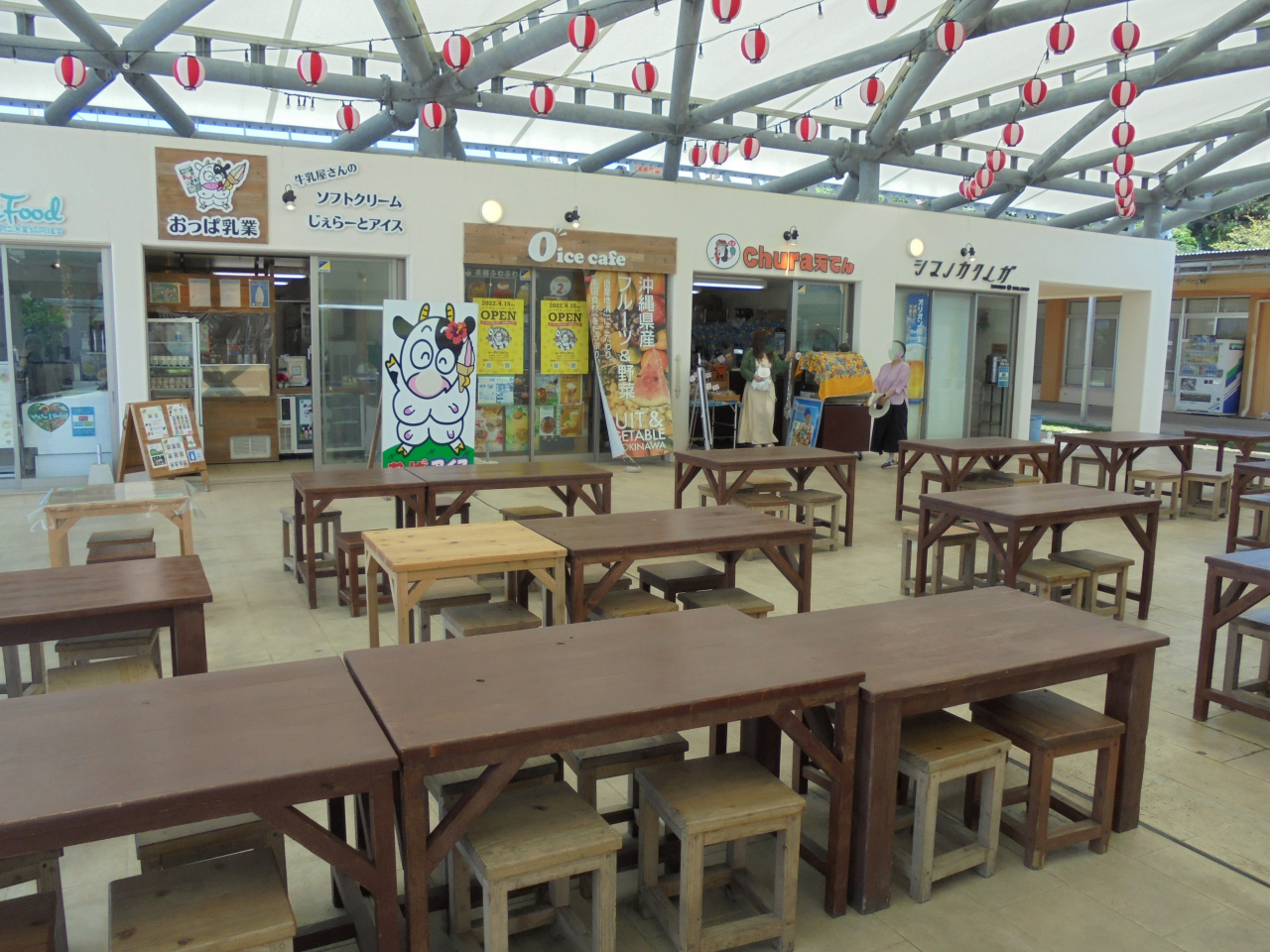 古宇利大橋のすぐ近くにある道の駅のような施設の中にあります。お土産ショップや食事処など飲食スペースもあって便利です。お土産ショップでは特産のフルーツなどを扱ったマーケットも併設。お土産の種類も豊富でショッピングにも最適な施設です。