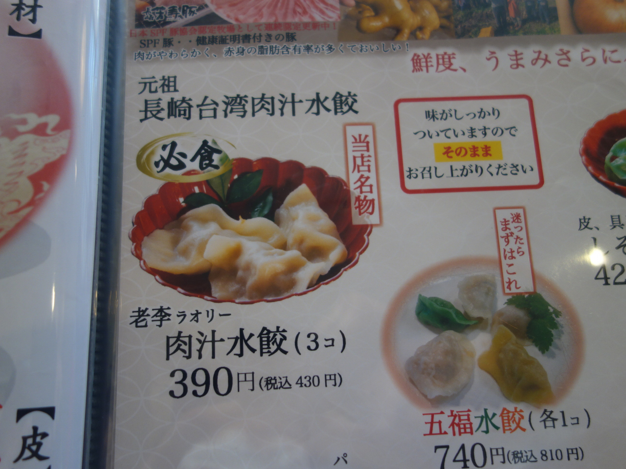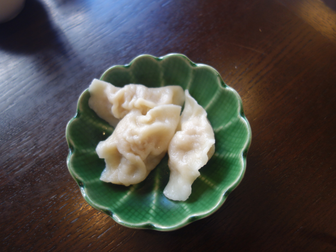 新地中華街のはずれにあって、ちょっと目立たないお店です。入口から2階に上がります。店内は結構広い。水餃子が看板商品ですが、本格的な中華料理店です。中華料理ならなんでもできるようです。水餃子。この店独特な料理ですが、まあ、水餃子なので、それなりの世界です。