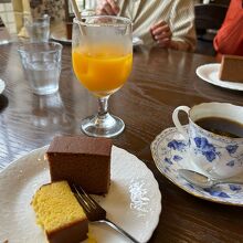 コーヒーとカステラのセットメニュー、蜜柑ジュースが美味しかったです。