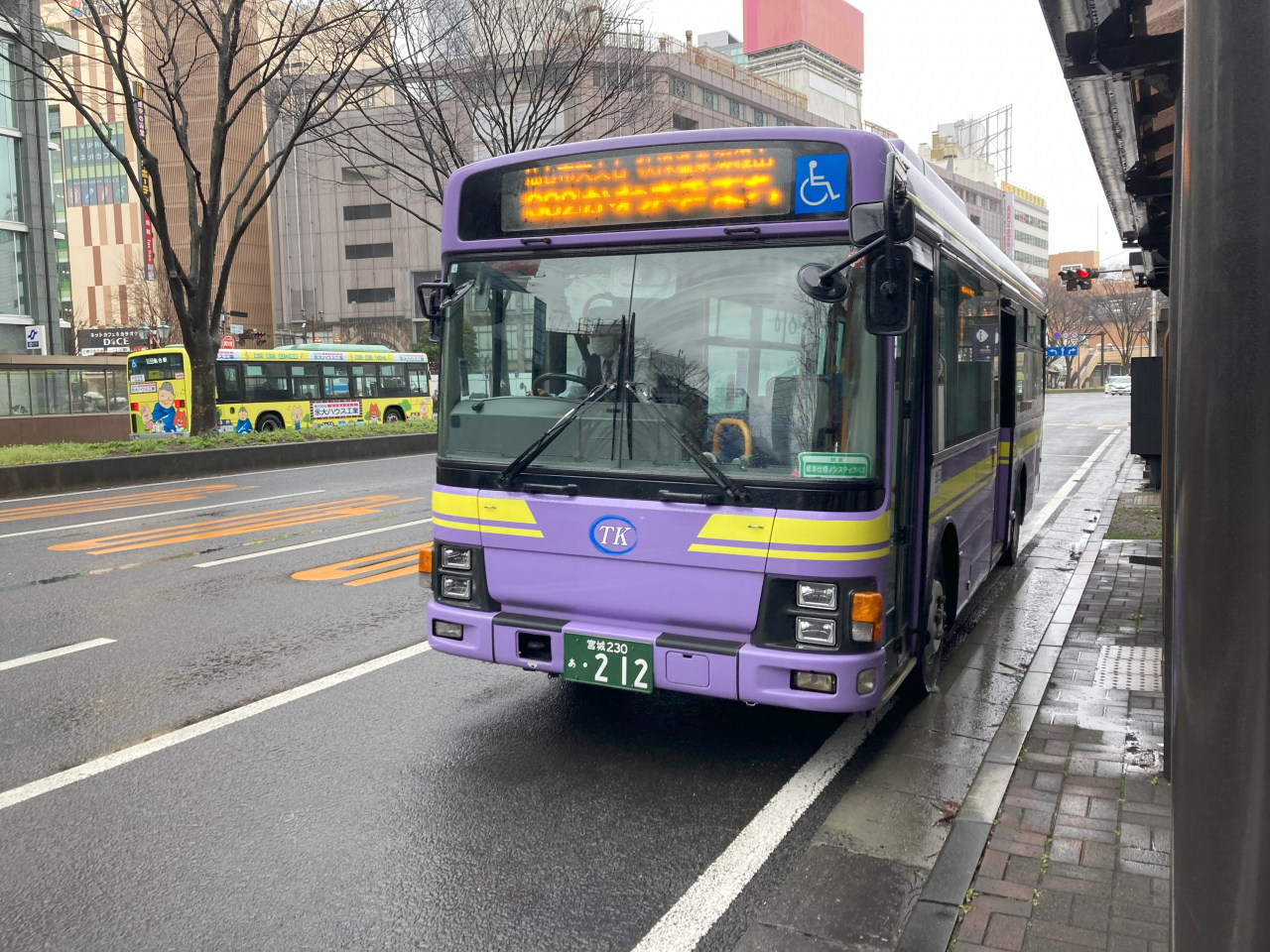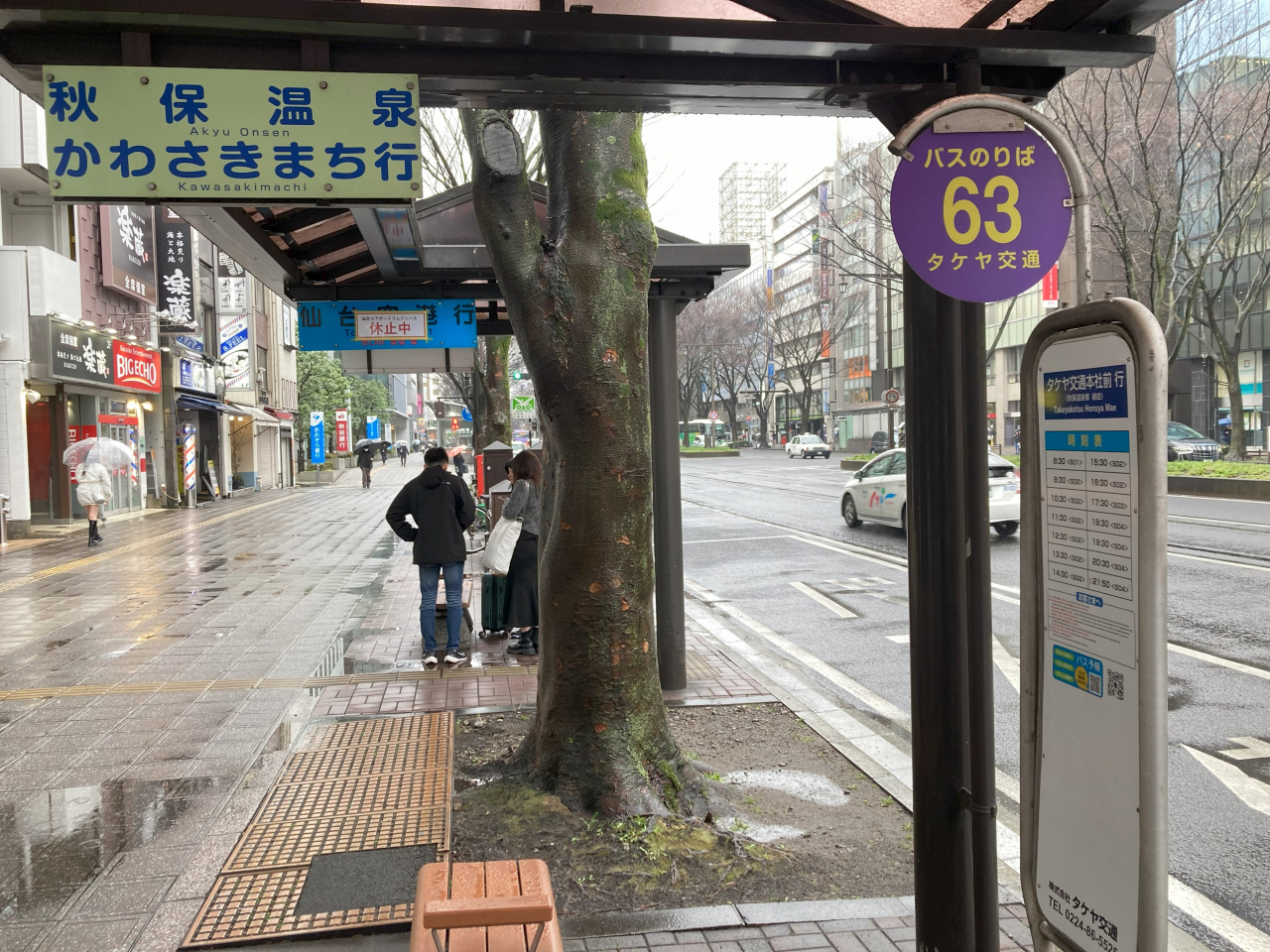 - 駅前ロータリーには乗り入れない。あおば通駅の真上ぐらいにある63番乗り場から出発