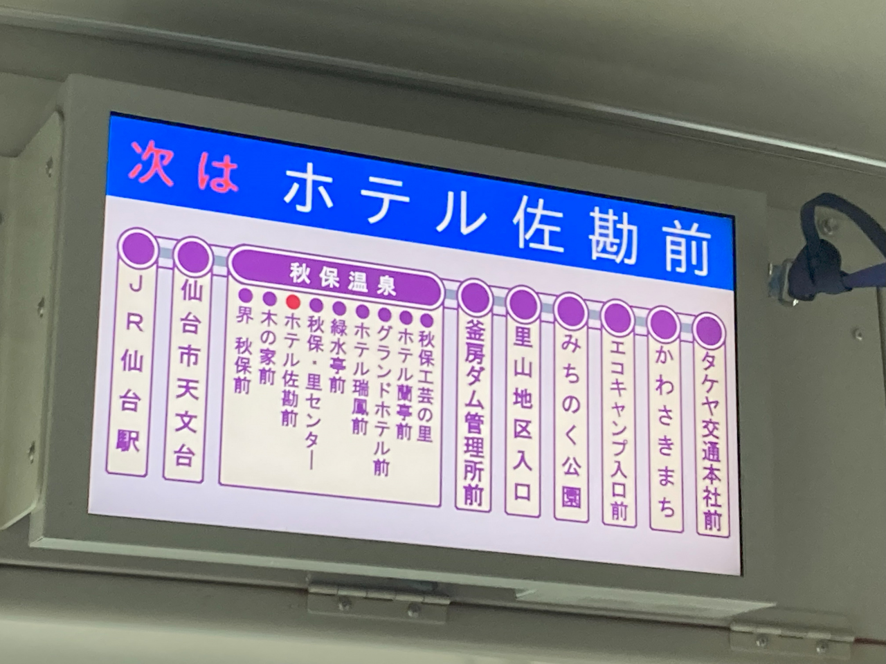 仙台駅前から、仙台市の南西にある川崎町まで走っている「西部ライナー」を利用しました。途中にある秋保温泉まで最短ルートで進み、温泉街の中をぐるっと1周するので使い勝手がいいです。バスはさらに本社のあるとなり町の川崎町に向かい、終点ではパークアンドライドもしているようです。