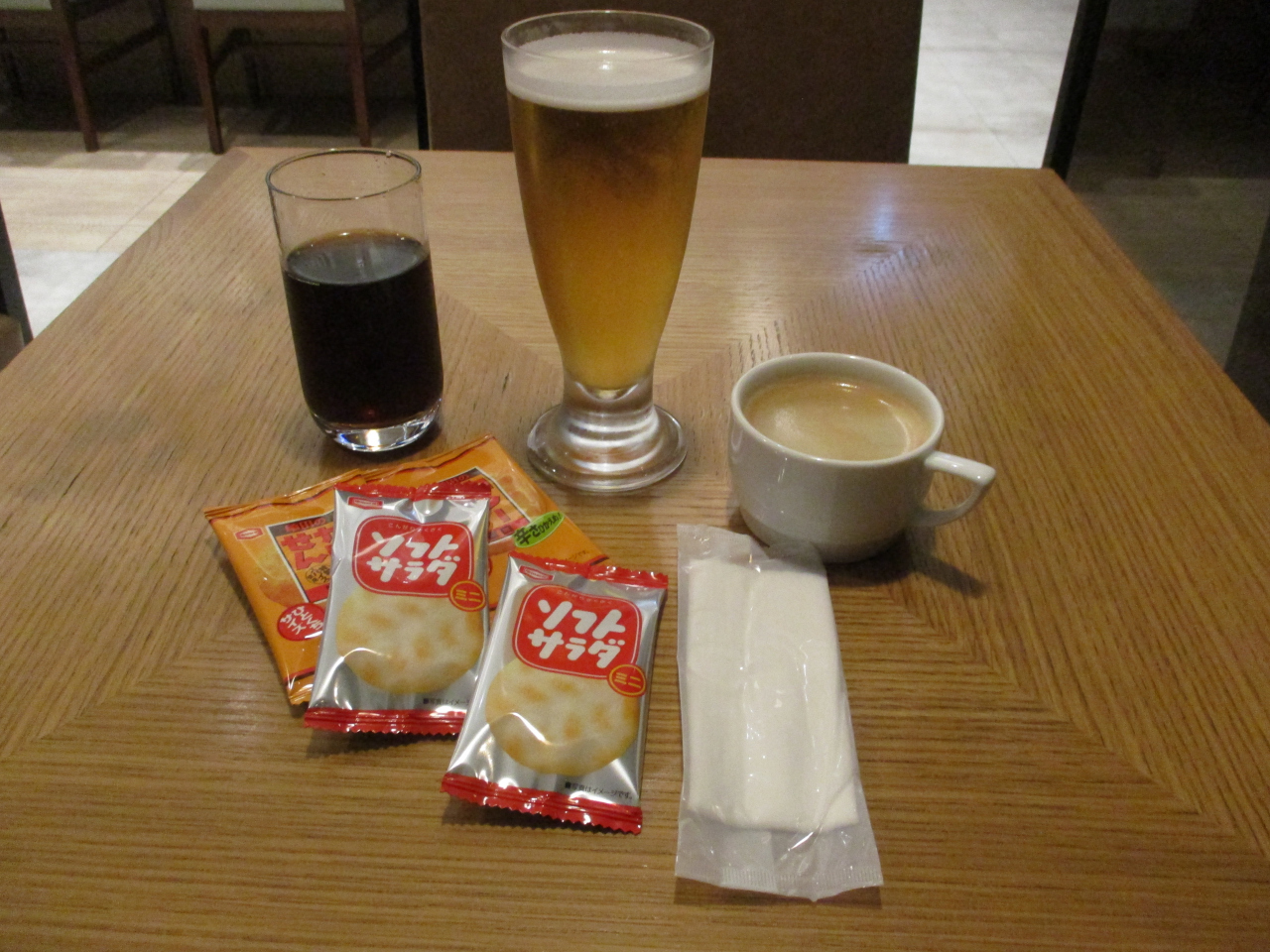 サクララウンジ 福岡空港国内線のおつまみのひとつにハッピーターンがありました。小分けの袋で大量に置いてあるのですが、久しぶりに食べると、これが止まらなくなります。いつも10袋以上は食べてしまいます。ビールのお供に最高のお菓子でした。