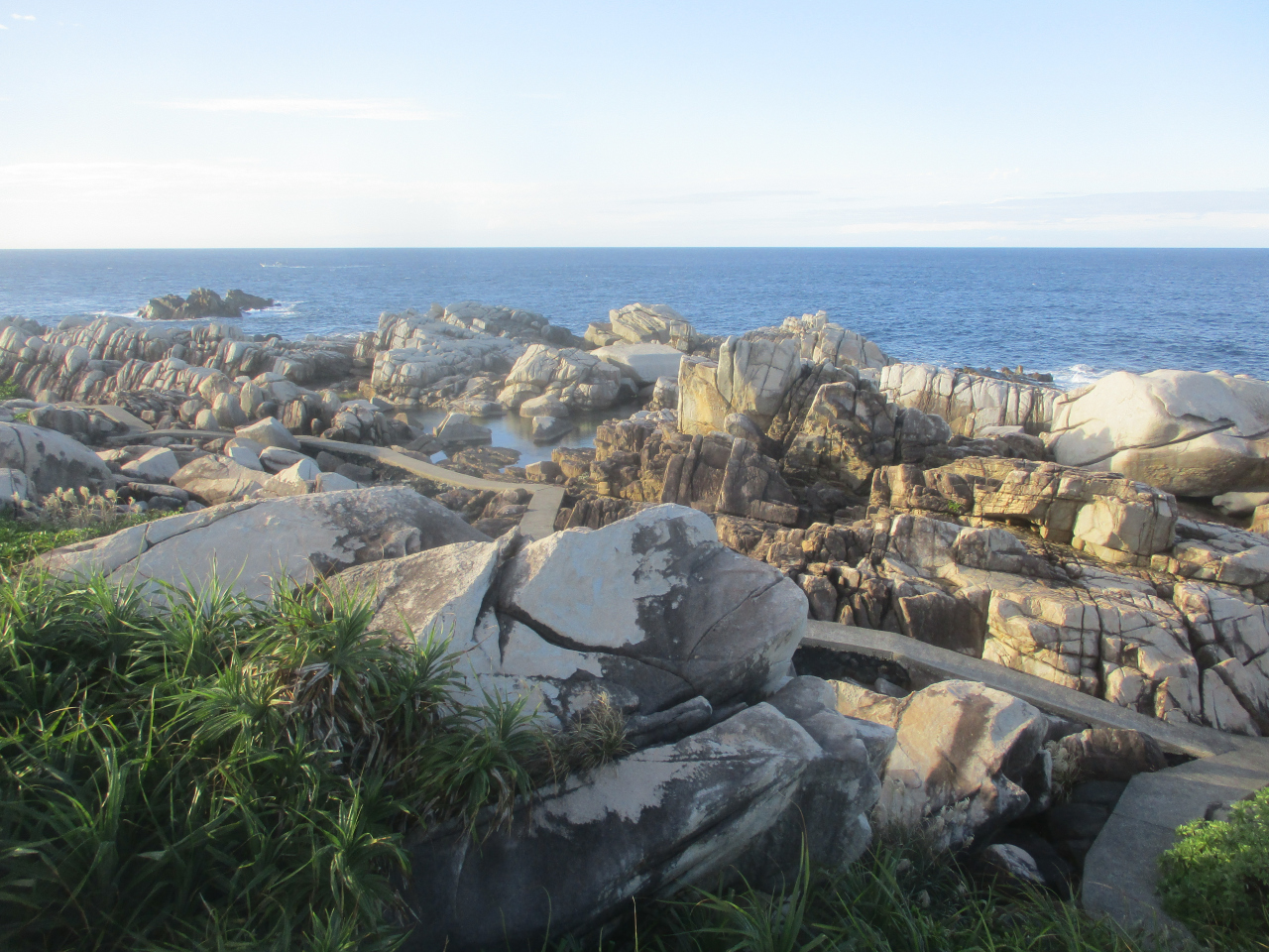 平坦でなめらかな岩盤がムシロを敷き詰めたように広がっているためこの名前が付きました。隆起サンゴ礁でできた地形が多い奄美諸島には珍しく、ムシロ瀬は花崗岩でできた地形でした。美しい夕日が見られる景勝地として知られるので、今度は夕方に来たいと思います。