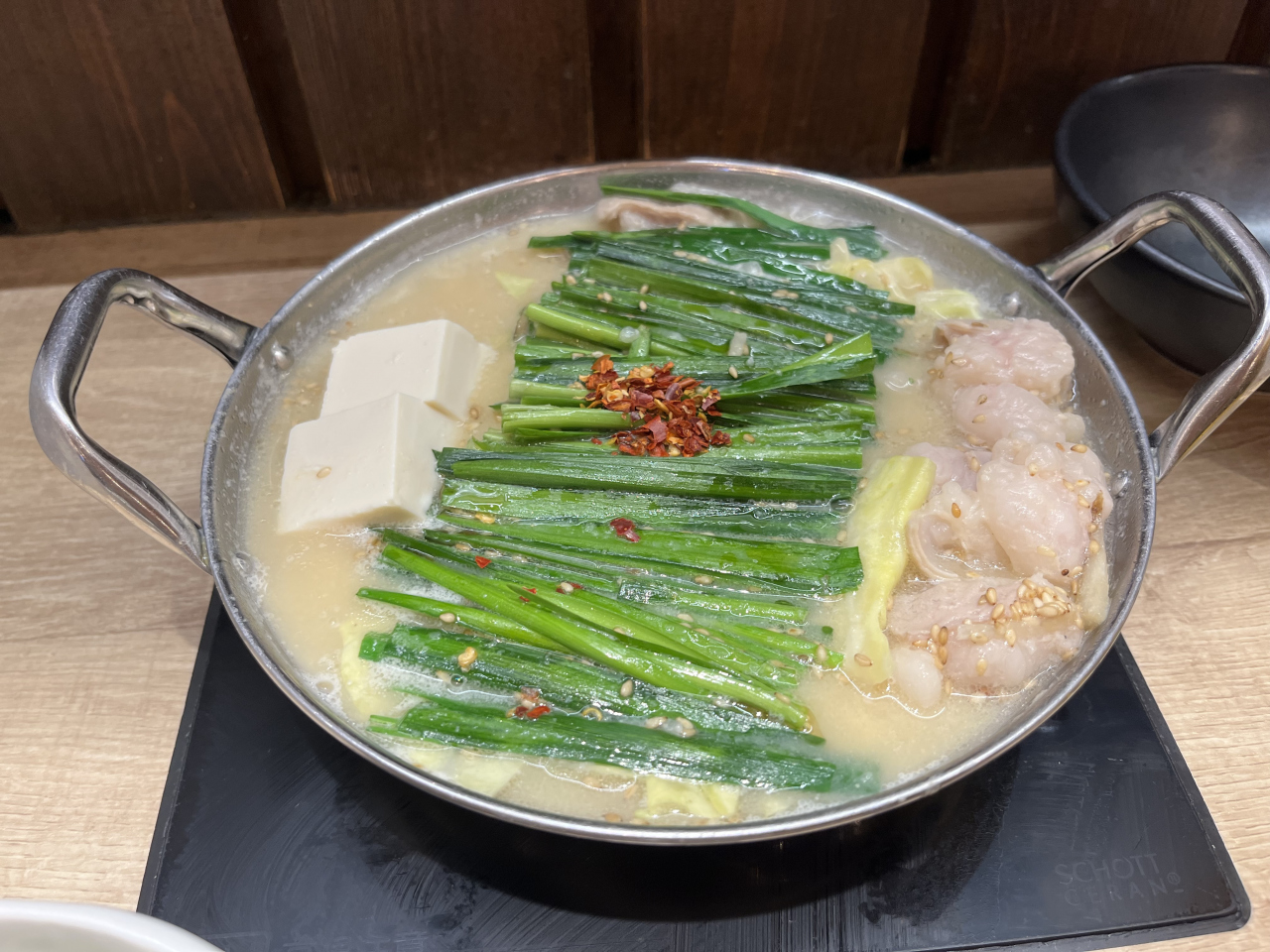 1人旅にはハードルが高いもつ鍋ですが、こちらはカウンターで1人前が食べられるのがありがたいです。