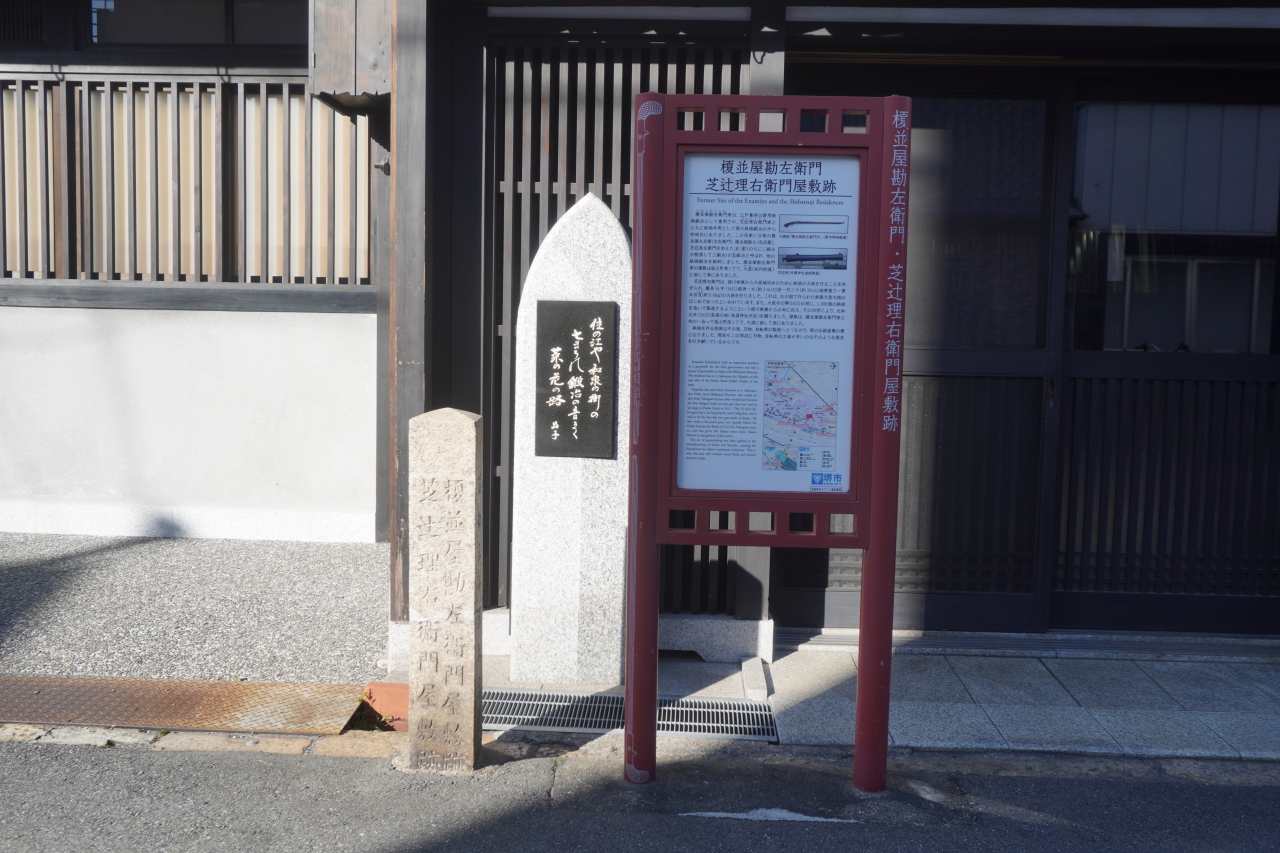 榎並屋勘左衛門 芝辻理右衛門屋敷跡は、水野鍛錬所の前に説明板がありました。榎並屋勘左衛門は、江戸幕府の御用鉄砲鍛冶。芝辻理右衛門とともに鉄砲年寄として鉄砲鍛冶の中心という地位にあったそうです。