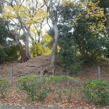 狐山古墳は、仁徳天皇陵古墳の南西隅近くにある陪塚であり、墳丘径30m、墳丘高5mの円墳。雑木林の中にぼんやり姿が見えるだけですが、かつては濠が巡っていて、葺石や埴輪、須恵器などが出土。墳丘には埴輪が並べられ、斜面には石が葺かれていたと考えられています。