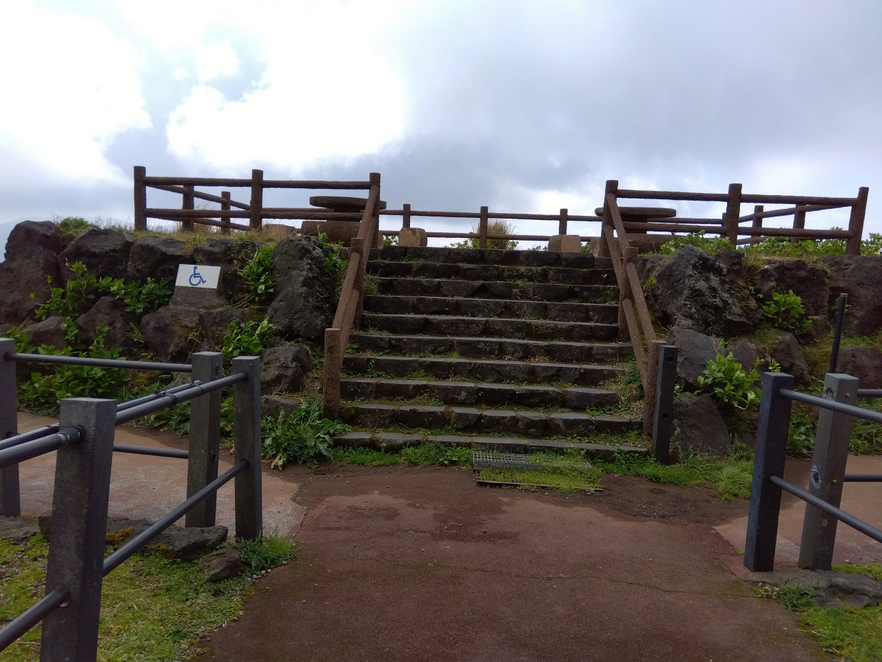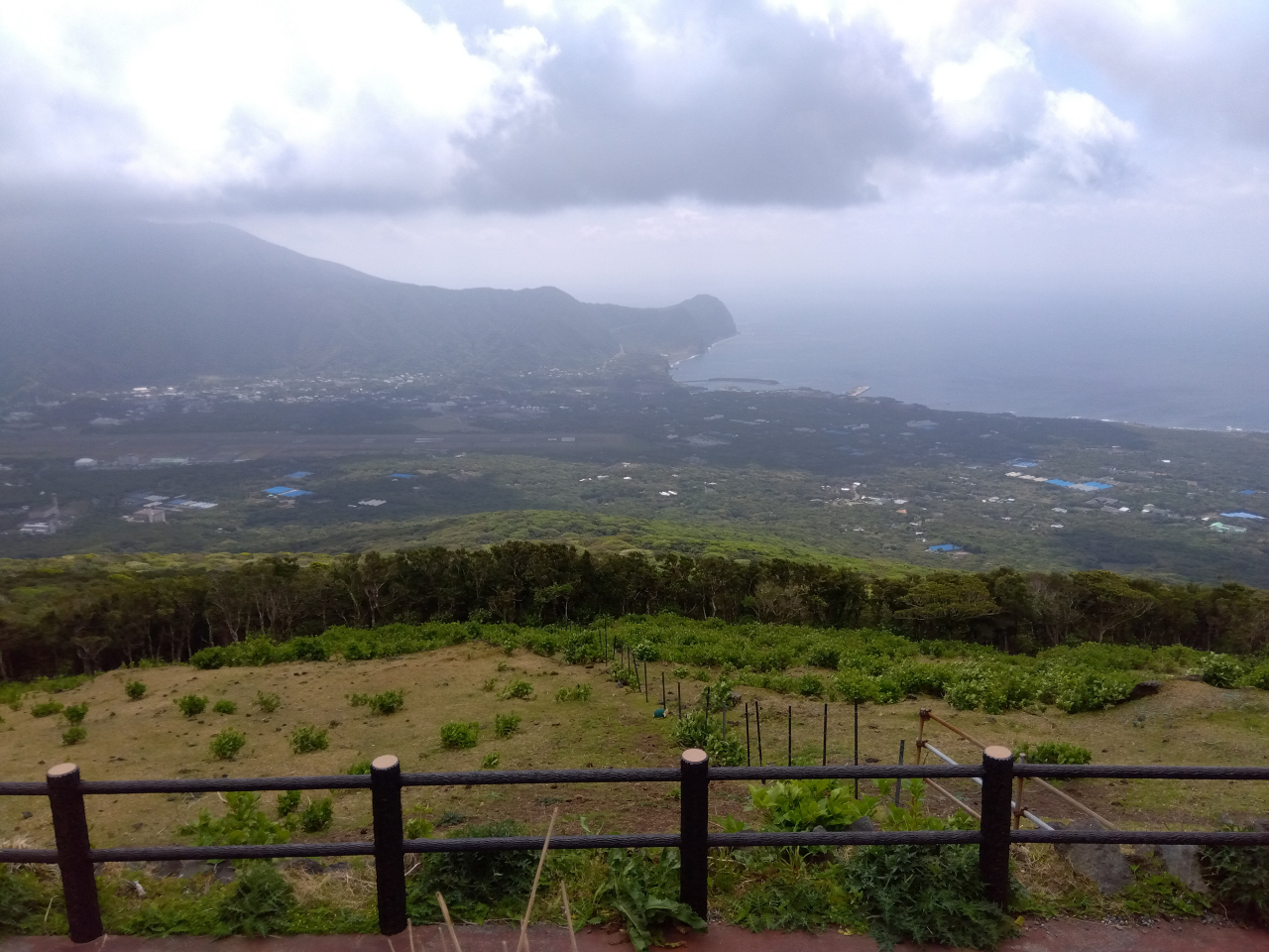 遊歩道の突き当たりの展望台のような所からは、三原山、市街地、太平洋、空港を一望できました。