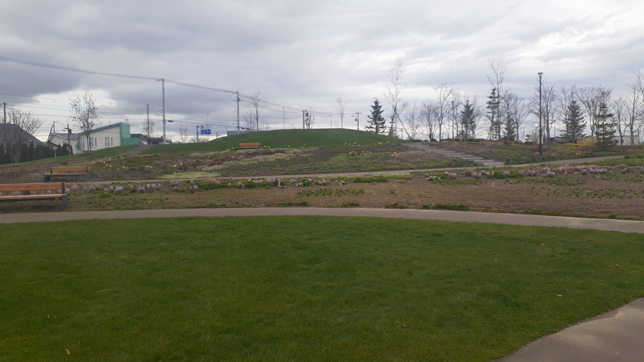 恵庭市内北部の国道36号沿いに位置する「花ロードえにわ」と称する道の駅の中にあるガーデンで、2025年4月27日に訪れました。