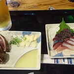 藁焼き鰹塩タタキが美味しくて、今まで食べたカツオとは違いました