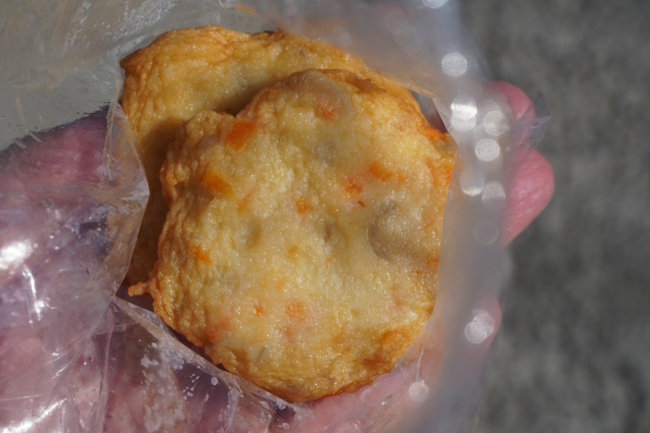 砂川かまぼこは、石垣の市街地だと東の端といったところ。ちょっと中心部からは離れます。ちょっと裏通りだし、小さなかまぼこ屋さん。観光客にはちょっと縁遠いかとは思いますが、近くを散策したので寄ってみました。残り少なくなった商品の中から適当に選んで、食べ歩き。しっかりうま味があって、石垣のかまぼこ屋さんはどこもレベルが高いです。