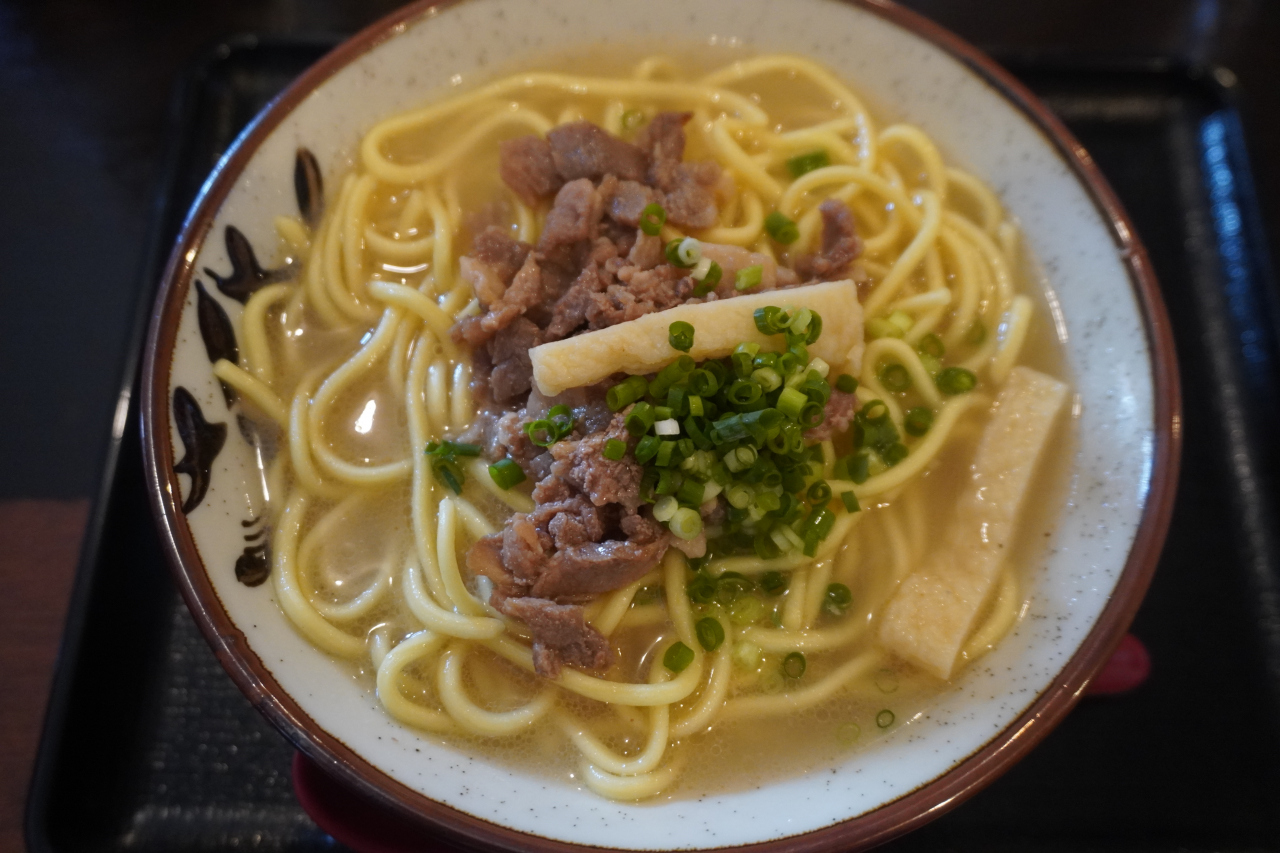あらかわ食堂は、具志堅用高記念館の隣り。ちょうど開店時間で少し行列ができていたので吊られて入ってみました。名物は牛そば。気になりましたが、やっぱり基本の八重山そばをいただきます。ちょっと脂分も感じる出汁は豊かな味わい。これはけっこうありですね。人気店なのは納得です。