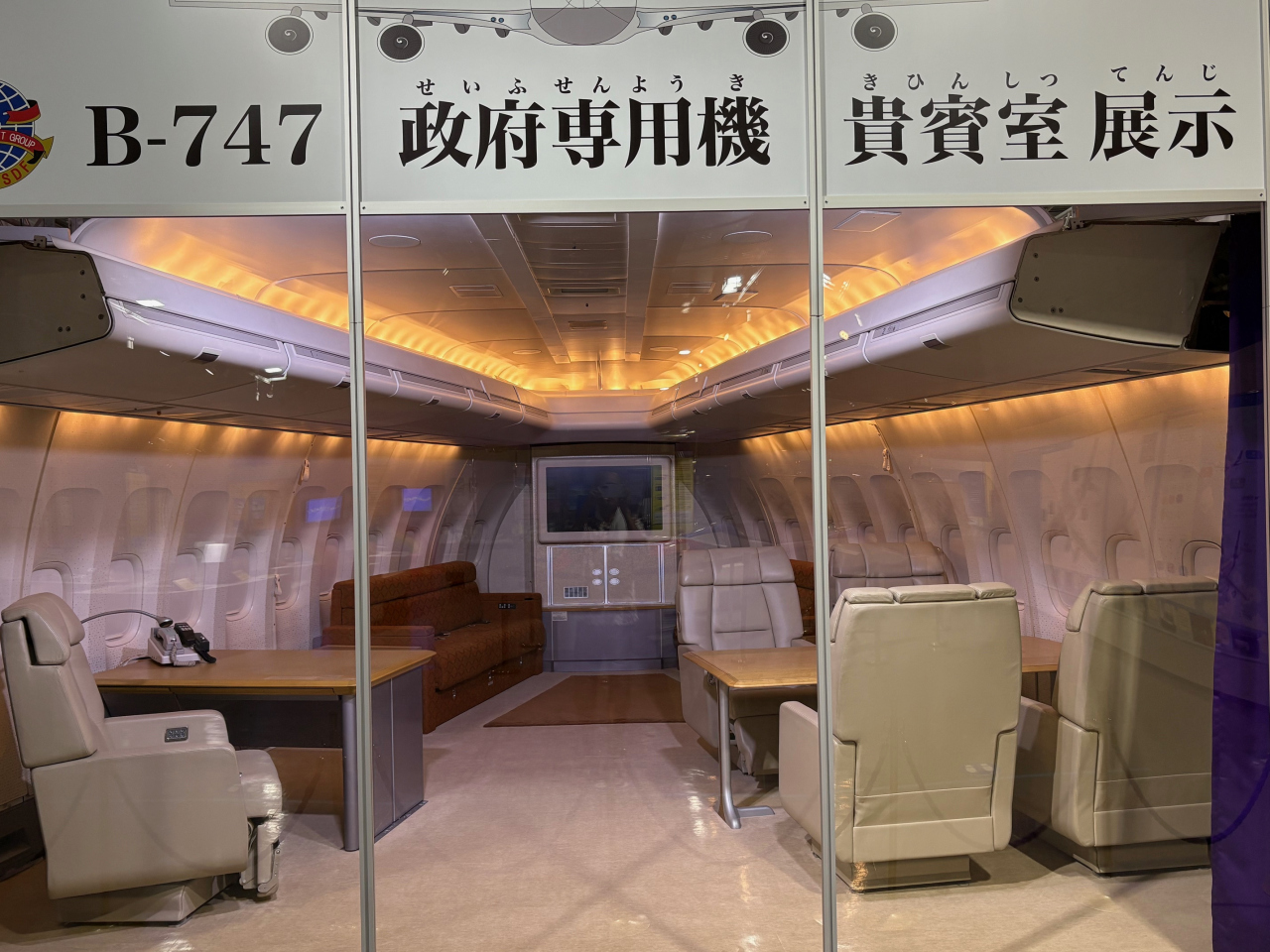 政府公用機の貴賓室の展示