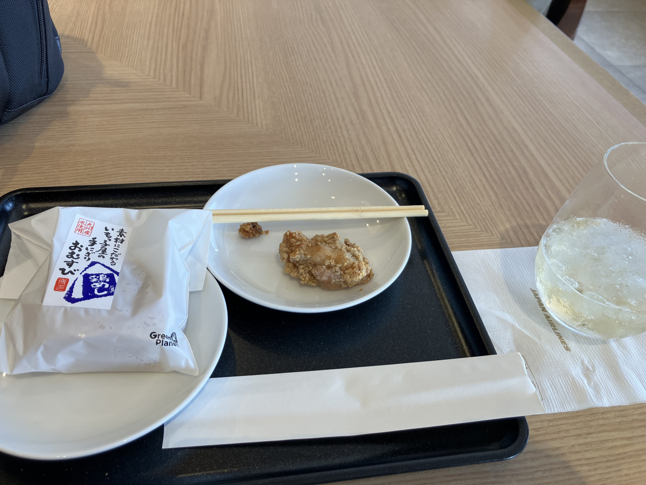 これまでJALのダイヤモンドプレミアラウンジは、新千歳を除き、羽田、伊丹、那覇を経験してきましたので、今回の福岡で4つめでしたが、羽田や伊丹にない食事のラインナップなどご当地色が出ていて楽しめました。どのプレミアムラウンジにもあるような飲み物やフードは不足なくある上、シャンパンやビールのお供にぴったりの暖かい唐揚げ、そして三日月屋のクロワッサンや明太子や炊き込みご飯のおにぎりなど、福岡ならではのフード類も頂けて、出発までの時間をゆっくり楽しめました。