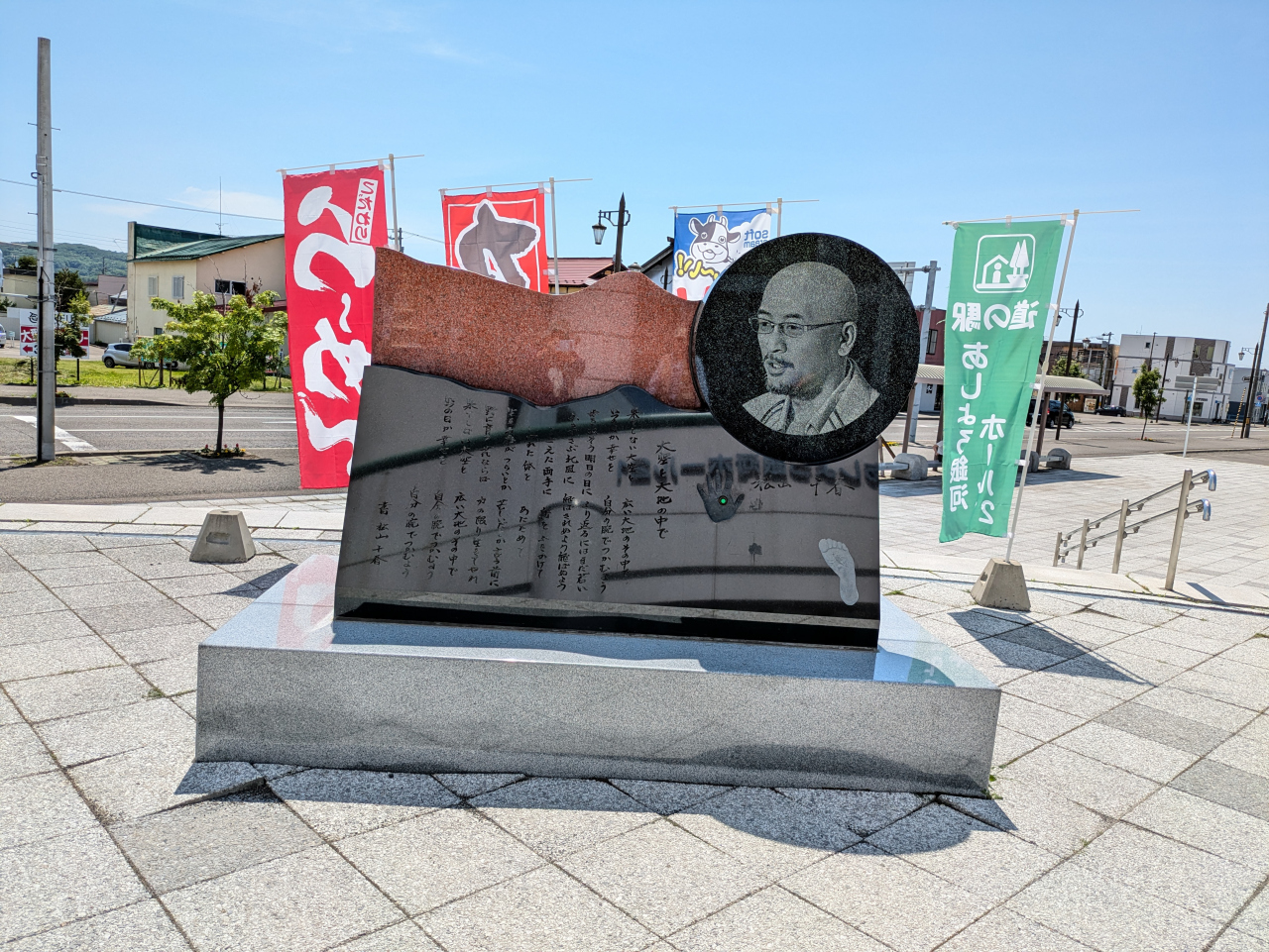 外には松山千春さんの歌碑があり、手形に手を合わせると、歌が流れてきます。
