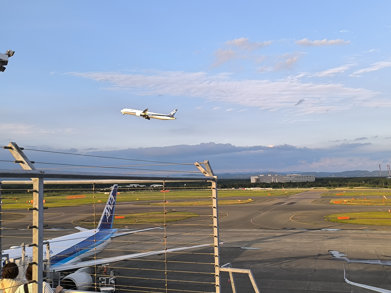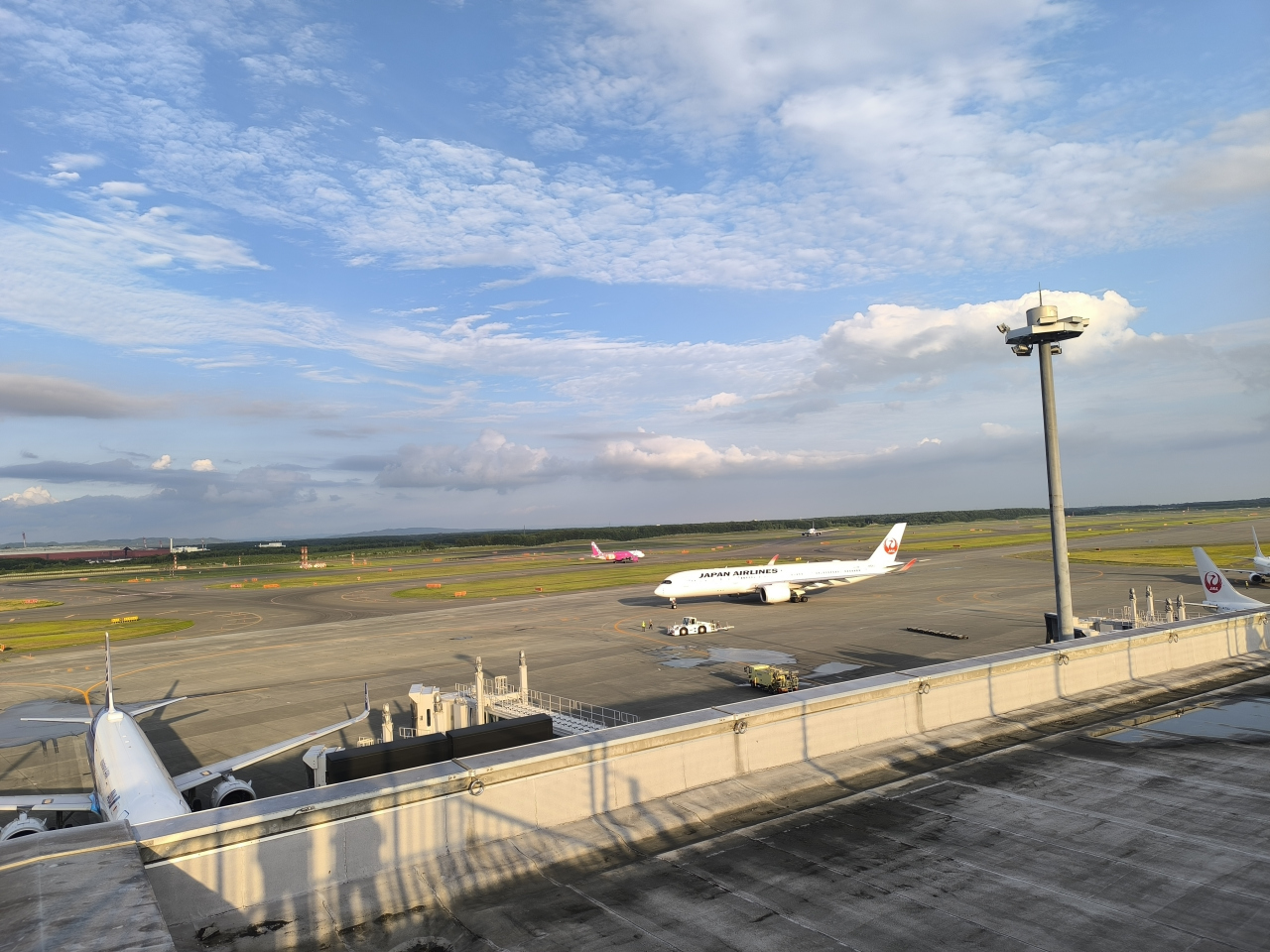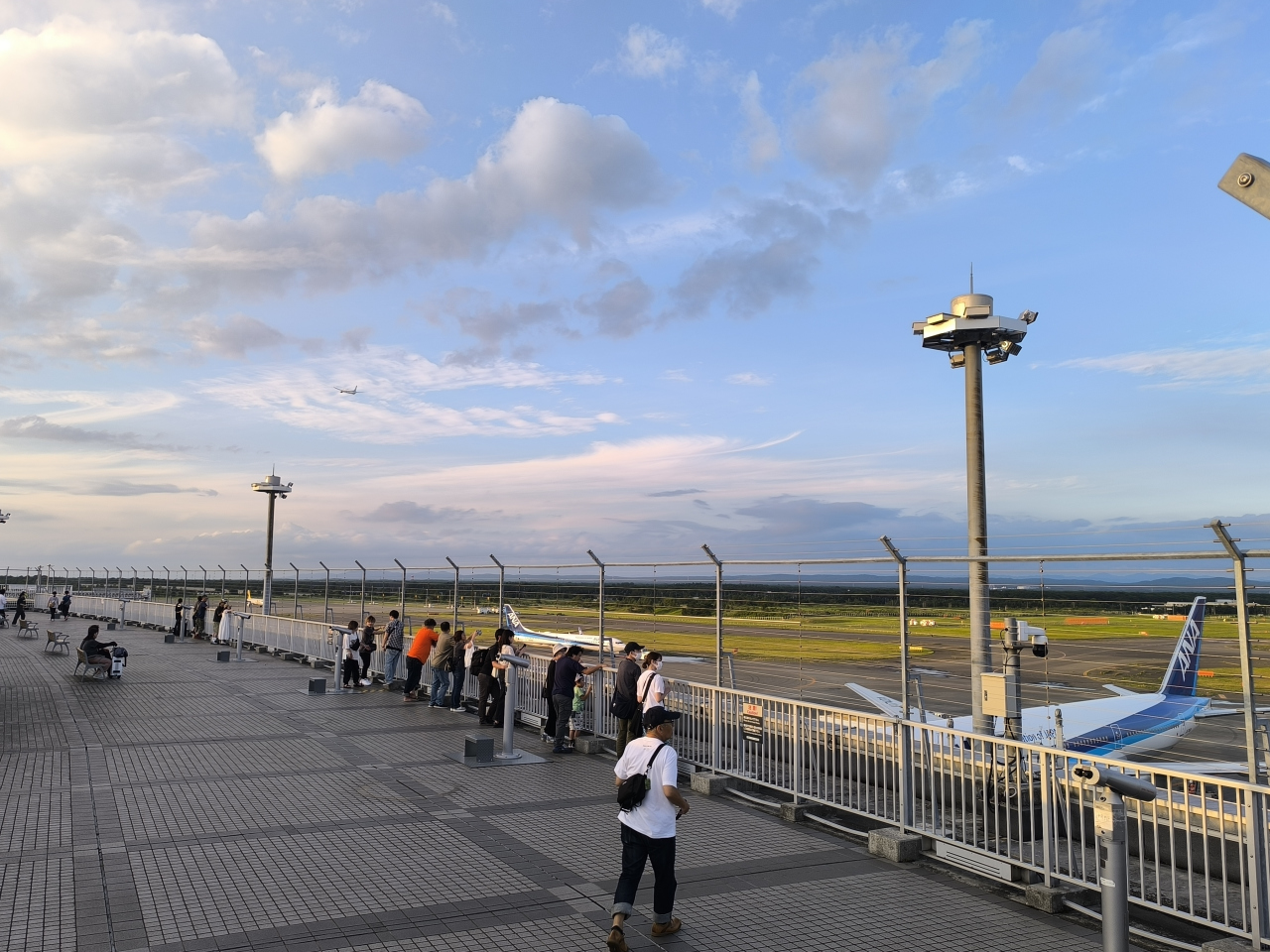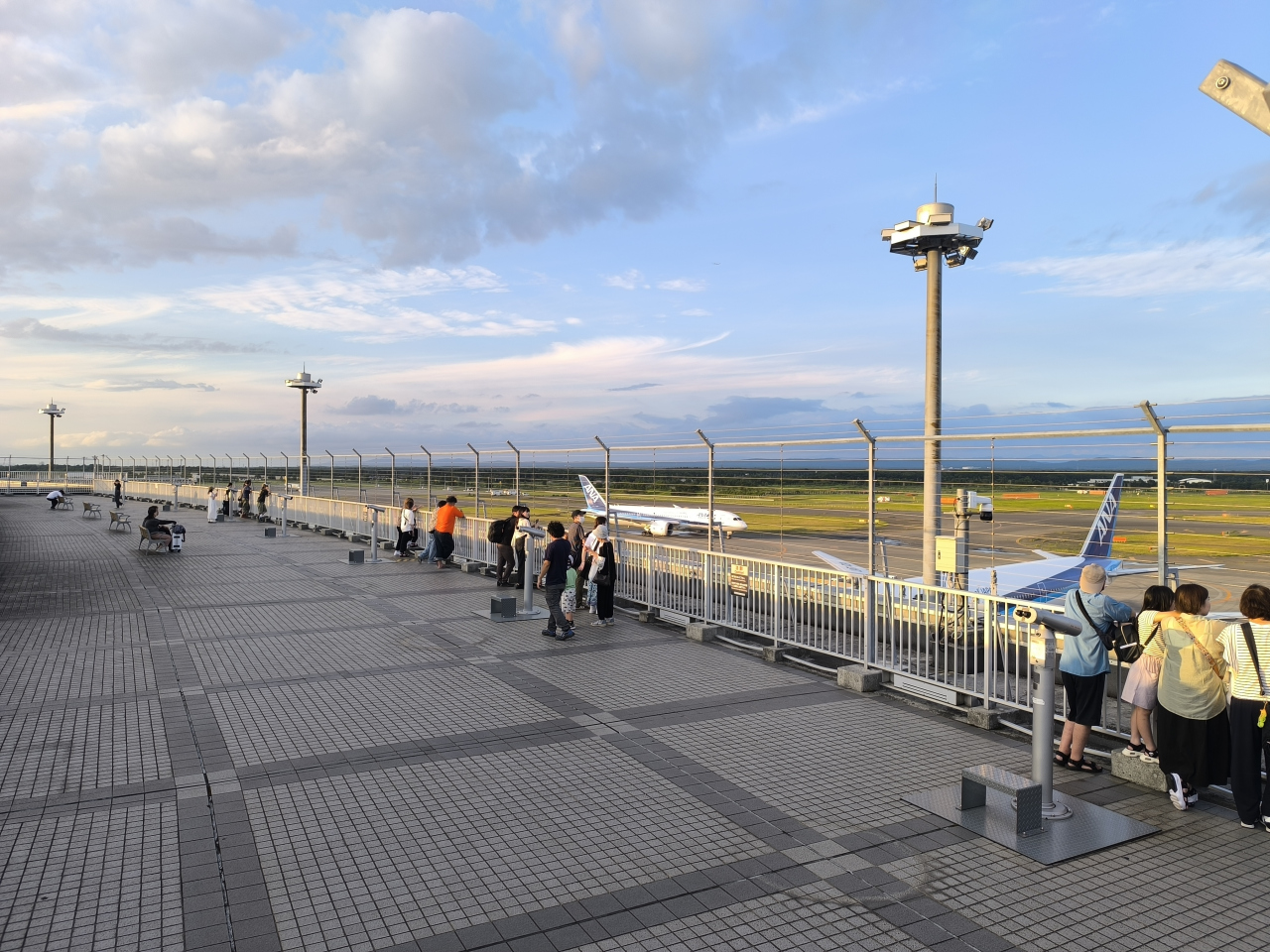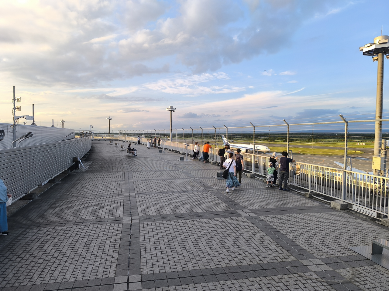 また、展望デッキと言っても、フェンスに囲まれた昔ながらのただの空港の屋上という感じで、しかも新千歳空港という規模の空港の割には狭いです。セントレアや羽田などの主要空港と比べると、設備がかなり見劣りします。