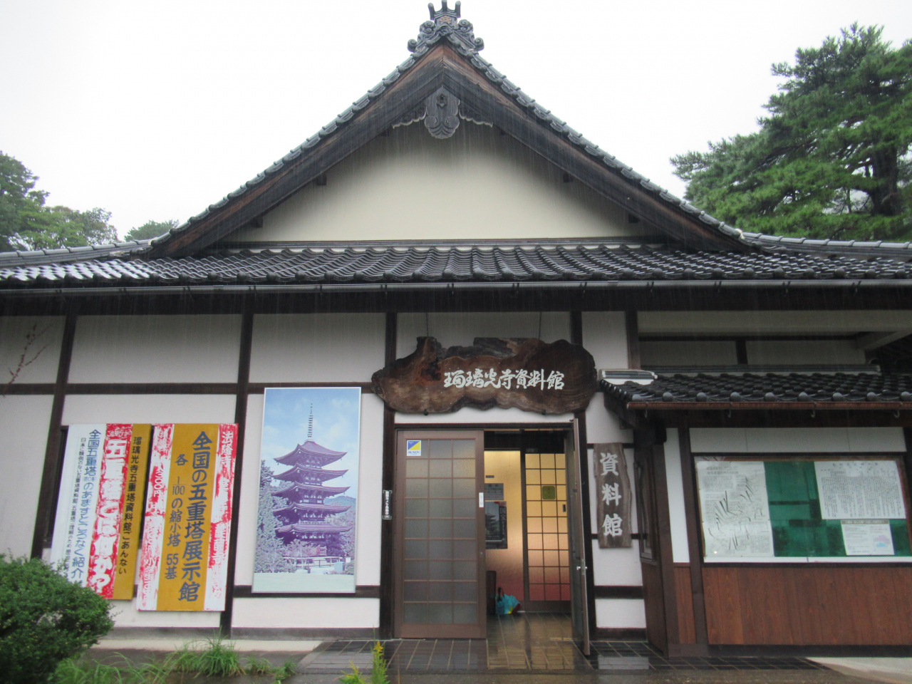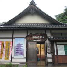 瑠璃光寺の受付の後ろにあります。二部屋からなる資料館です。現在修復工事中の五重塔の来歴のパネルがありました。全国各地の五重塔40塔の写真と説明が展示されていました。奥の部屋には全国各地の五重塔のミニチュアが飾ってありました。修理工事の作業状況のモニターがあり興味深かったです。屋根の作業をしていました。受付スタッフが、五重塔は覆われて見えないが、作業している場所は中でライトをつけているので薄っすら灯りが漏れているからわかると教えてもらいました。モニターで見た場所が灯りのところだと知りました。