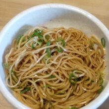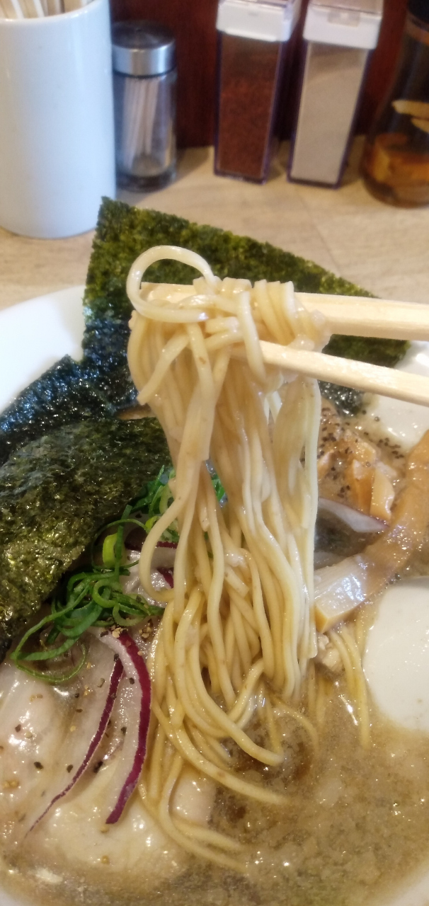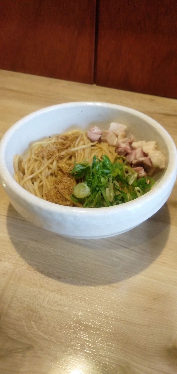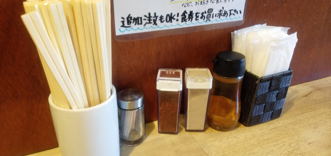 しぞ~かの食文化、朝からラーメン:朝ラー。7~10時/11~14時の朝/昼で営業しているお店。券売機制でお水セルフ、駐車場無しのお店。カウンター5席・1人テーブル3卓のちいさなお店です。テーブルセットの鯖節ビネガーが味変に良い仕事します。