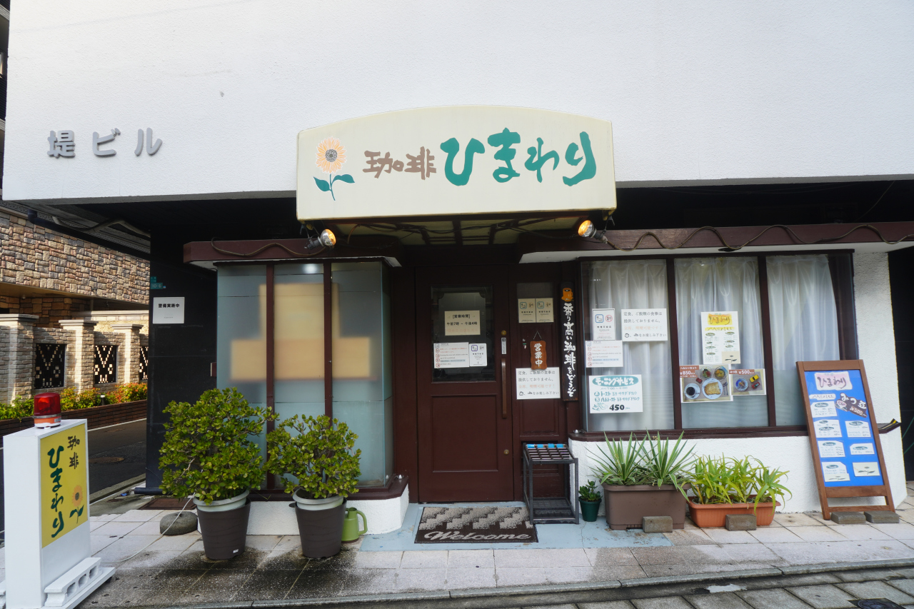 珈琲ひまわりは四ツ橋筋に面した小さな喫茶店。なんば駅からは少し離れているのですが、朝早くからやっていて、常連さんがポツポツとやってくるようなお店。おばあちゃんが一人で切り盛りしていて、モーニングが450円というのは今どき珍しいかもしれません。テーブル席とテレビに向かったカウンター席が混じった店内の席配置も特徴ですね。モーニングの野菜が新鮮で、ちょっと印象に残りました。