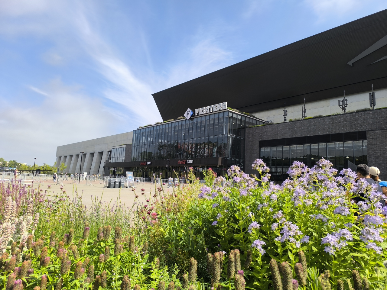 エスコン内には幾つものお店があるとして、外の公園の敷地には、スターバックスコーヒーや焼き立てパンのトリュフベーカリー、軽食レストランが入るクボタアグリフロント、回転寿司の函太郎なんてのもあります。