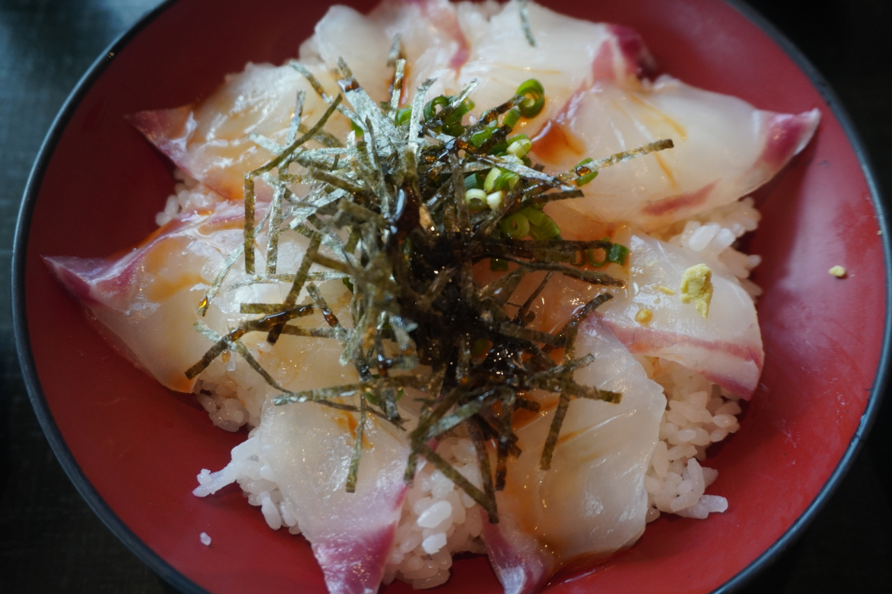 ゆらり内海では、宇和島では鯛めしばかり食べていたので、ちょっと変わったところという意味で、たい丼をいただきました。この辺りは、鯛の養殖が盛んですから、鯛は豊富にあるので、このたい丼もけっこうおいしい。座敷でゆっくりできるし、いい晩飯になりました。