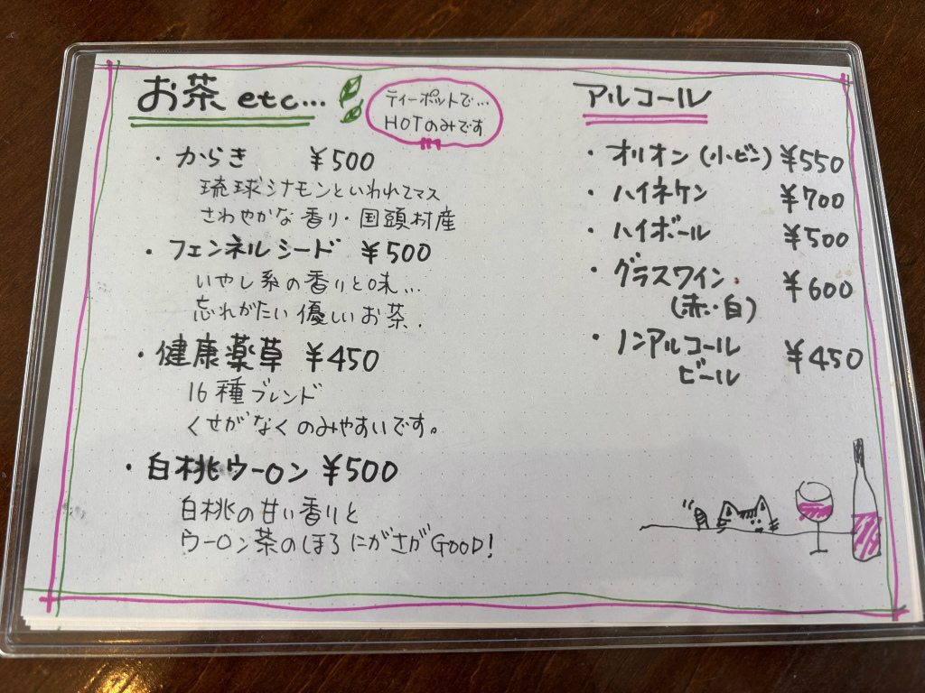 夜は簡単なアルコールメニューもあるので軽く飲みたい方でもOKです。