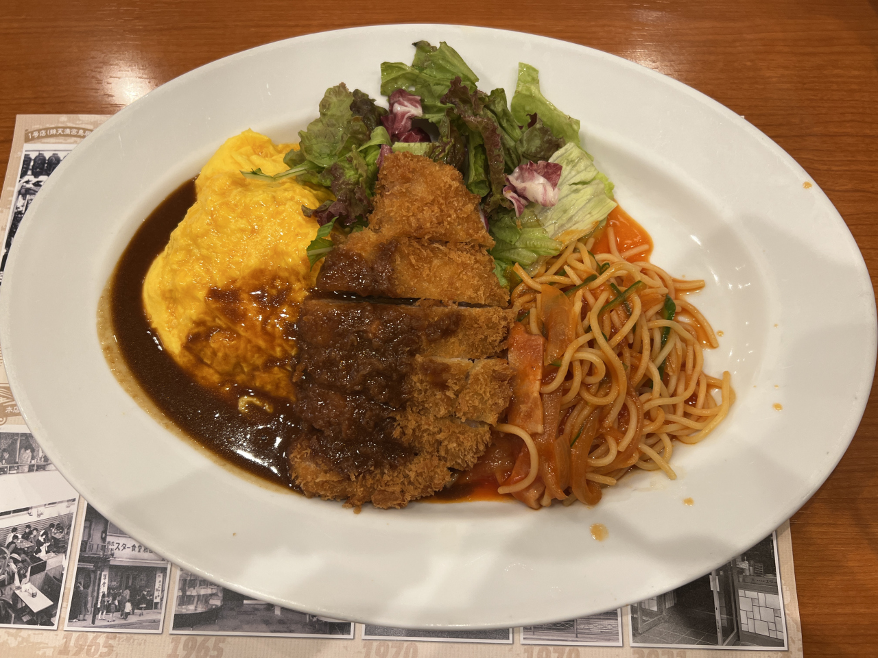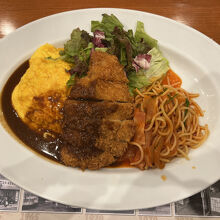 トルコライスの肝はナポリタンだと思うんですが、こりゃダメです。サラダが一番美味しい。