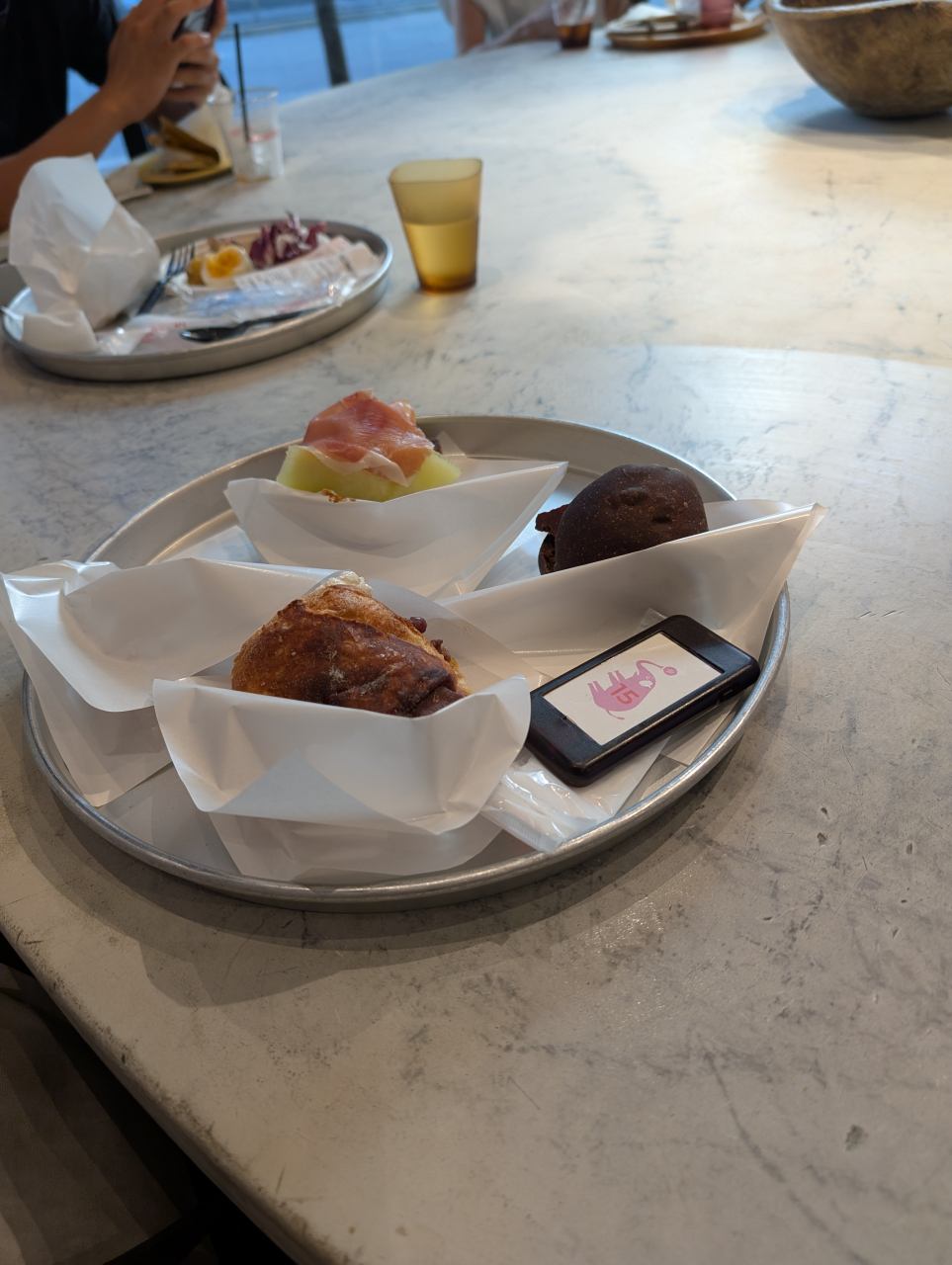 福岡では有名店だそうで、イートインで食事をしていた半数以上の方々が海外観光客のようでした。味や、食感は今まで味わったことがないパンでした。イートインスペースはあまり広くないので多少待たされましたが、時間帯の問題なのか、時間がたつと潮を引くように人は少なくなっていきましたので必ずしも混雑で入れないということはなさそうです。
