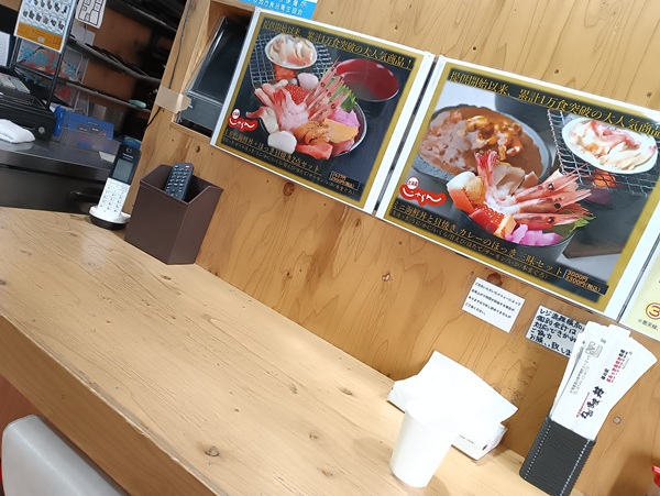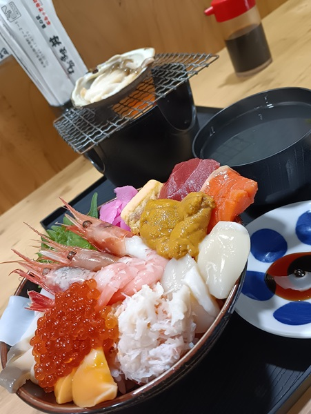 どんぶりは美味しくいただきました。他のお店ではカットメロンを店内でいただき、バフンウニを購入。見るだけでも楽しいと思います。