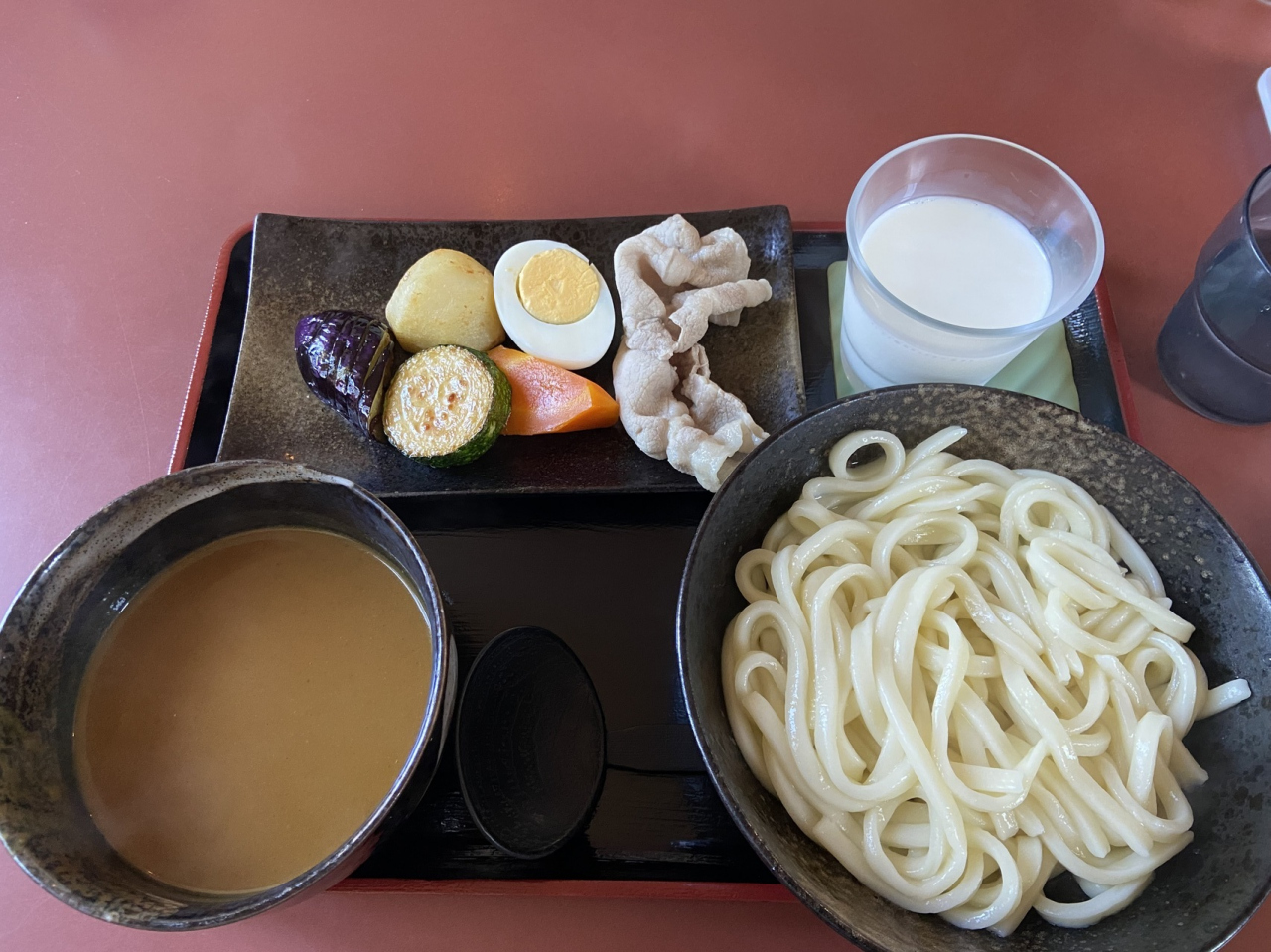 美瑛カレーはつけうどんみたいな感じで面白かったです。ついてきた牛乳はぬるかった…。
