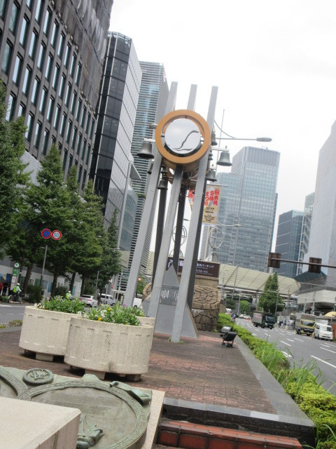 中央通りと八重洲通りの中央分離帯に゛平和の鐘゛が在りました。澄んだ音色のカリヨンが毎日の定時に定期的に鳴ります。八重洲通りは車道が走っていますので車が多く危ないのでいつもはせかせかと歩きますが、今回は立ち止まってその澄んだカリヨンの音色を聴きました。心に響くカリヨンの音色は素敵でした。これからもたまに立ち止まって聴きたいと思いました。