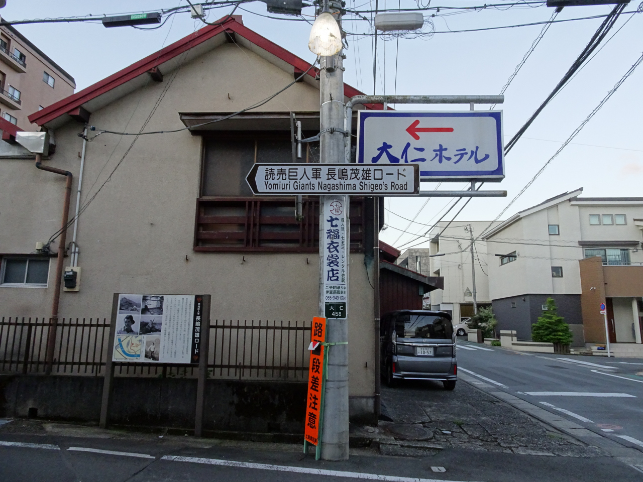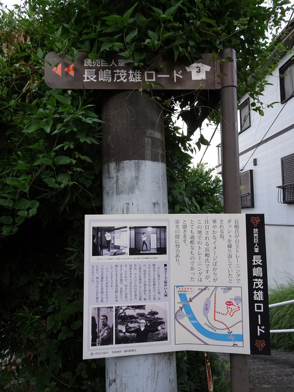 現役終盤に毎年大仁ホテル富士の間に泊まりながら自主トレをしていました。街中からホテルのある高台までの坂はきつく、トレーニングにはうってつけ。案内板の数カ所あり、長嶋さんのエピソードが書かれていて人柄がわかります。時間をつくり、近くの学校に訪問したり、ホテルの畳が素振りで擦り減ったり、壁に傷がついたりと。次回は一人でゆっくり回りたいです。